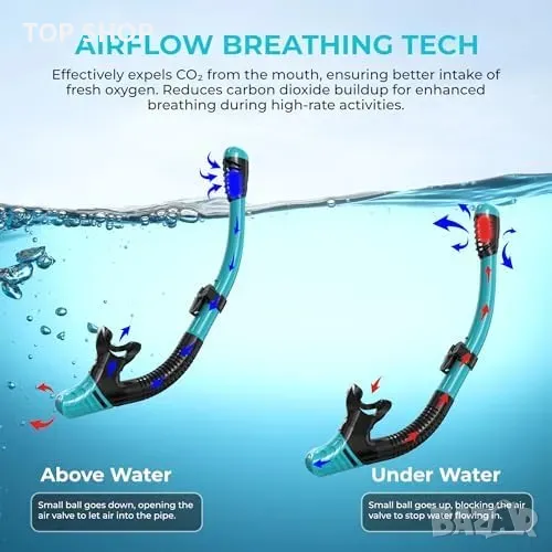 Лесно дишане: Система с лек силиконов клапан и гъвкав сух топ, който намалява CO₂ и подобрява дишането.