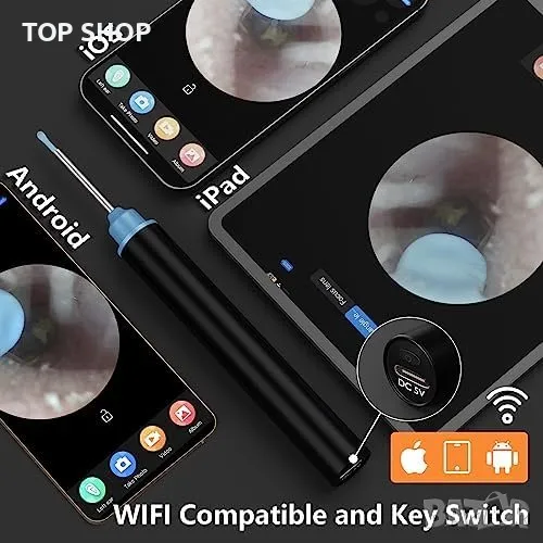 5MP HD камера + 360° широк ъгъл: Ясни изображения и видеа за проверка на здравето на ушния канал.