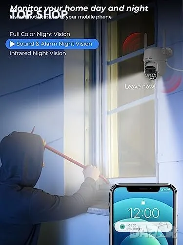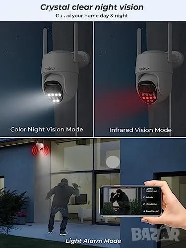 Цветна нощна визия с 3 режима (пълноцветен, инфрачервен, двоен светлинен алармен режим)