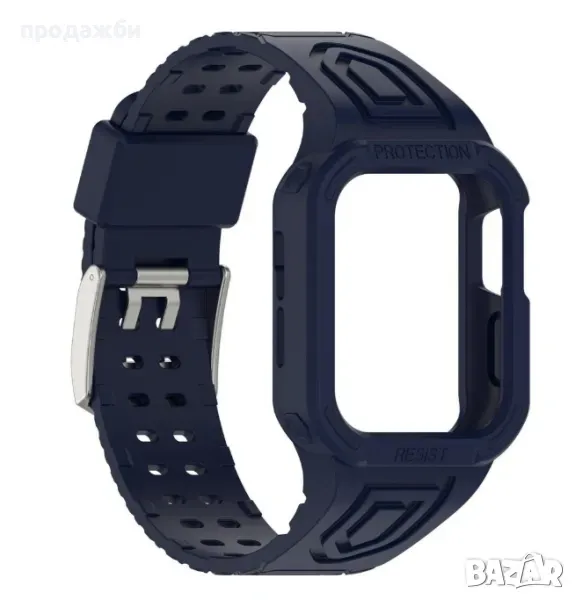 Протектор, оригинална синя силиконова кайшка, още няколко кайшки (3) и капаче. Всичко запазено, без забележки. Часовника НЕ работи добре, разкача се от телефона. Моля, сериозни купувачи.