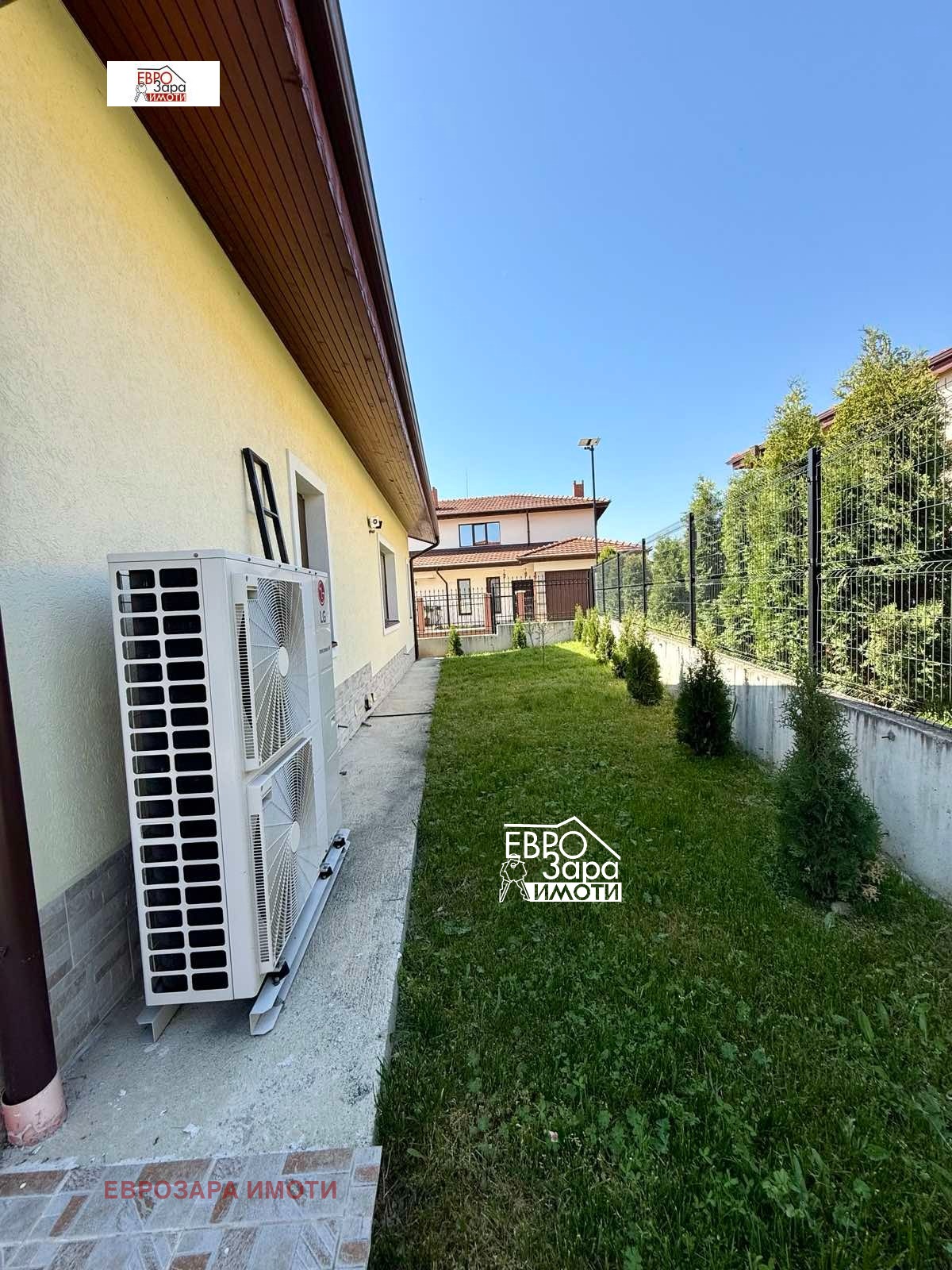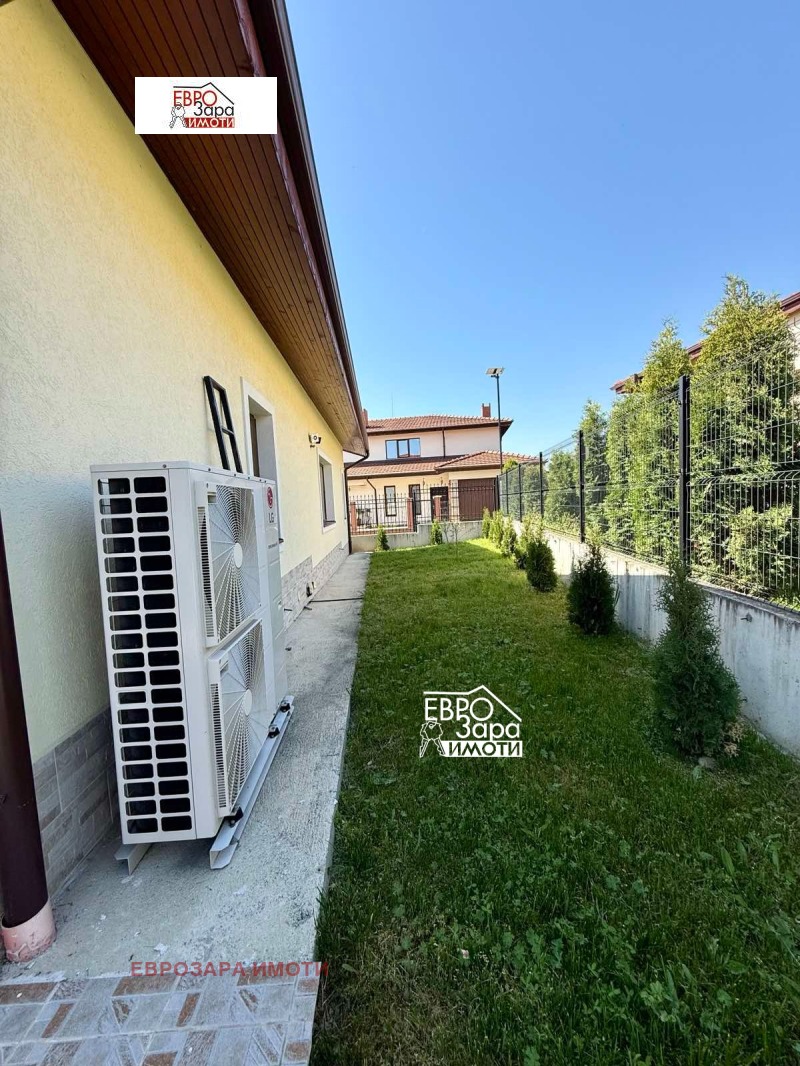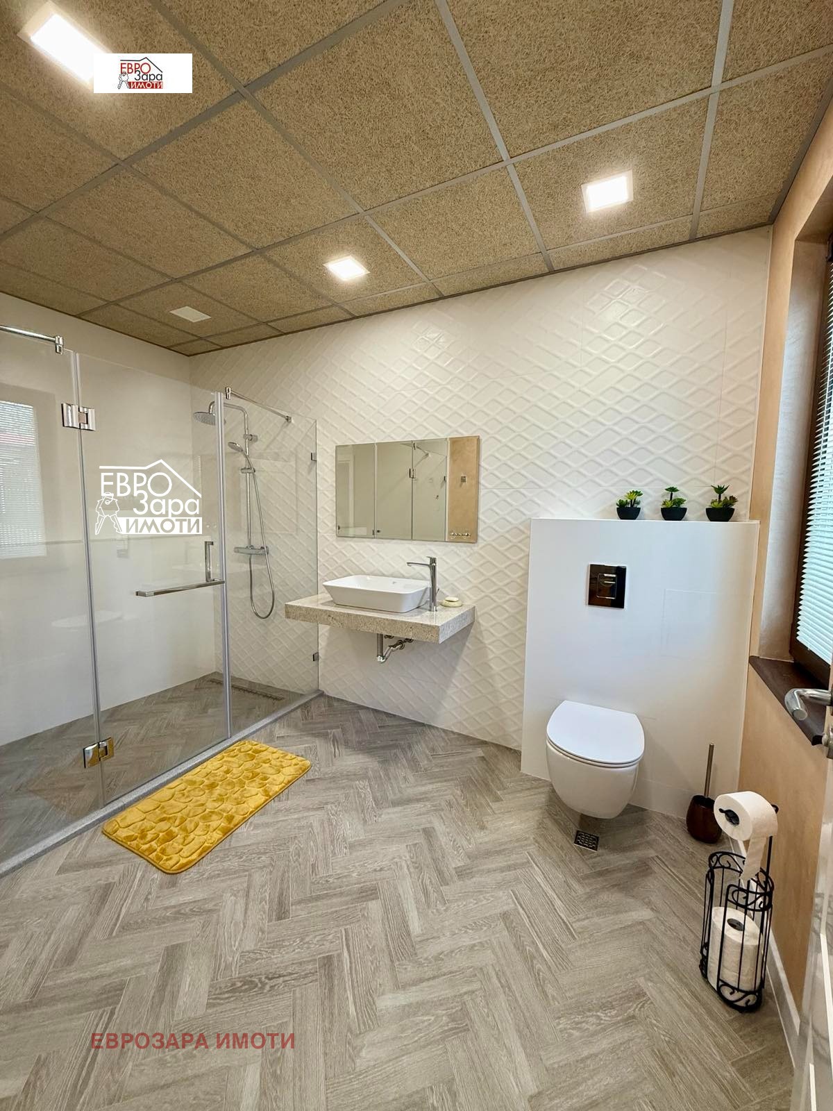 ЕвроЗара Имоти има изключителното удоволствието да Ви представи уникална по рода си къща в град Стара Загора. Къщата е с РЗП 230кв.м.,масивно строителство,едноетажна, завършена през 2018 година. Разпределението е както следва: голяма ,просторна всекидневна от близо 80кв.м., три спални, три бани с тоалетни, складово помещение и обширно подтаванско пространство извън посочената квадратура, което може да бъде използвано за дрешник,склад или други опции.