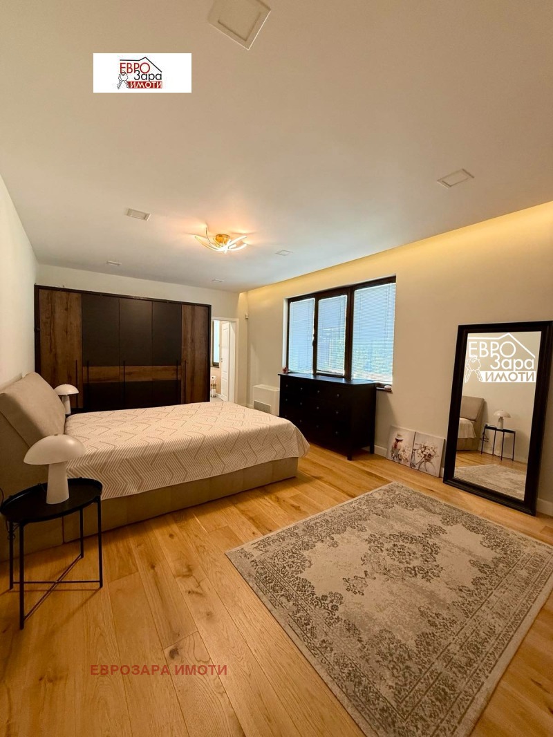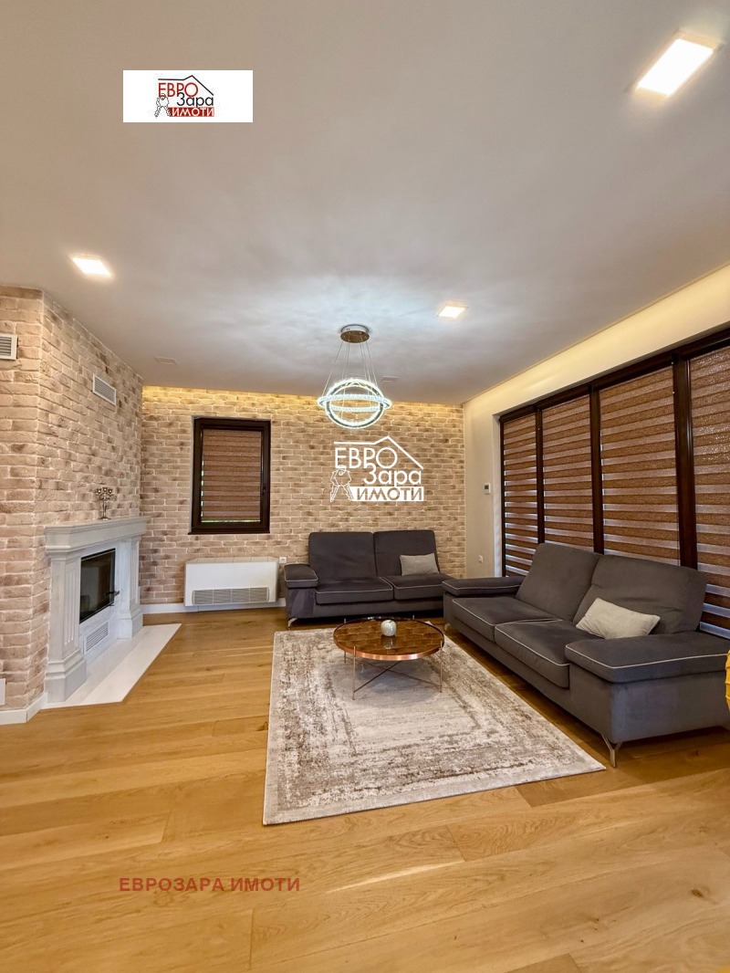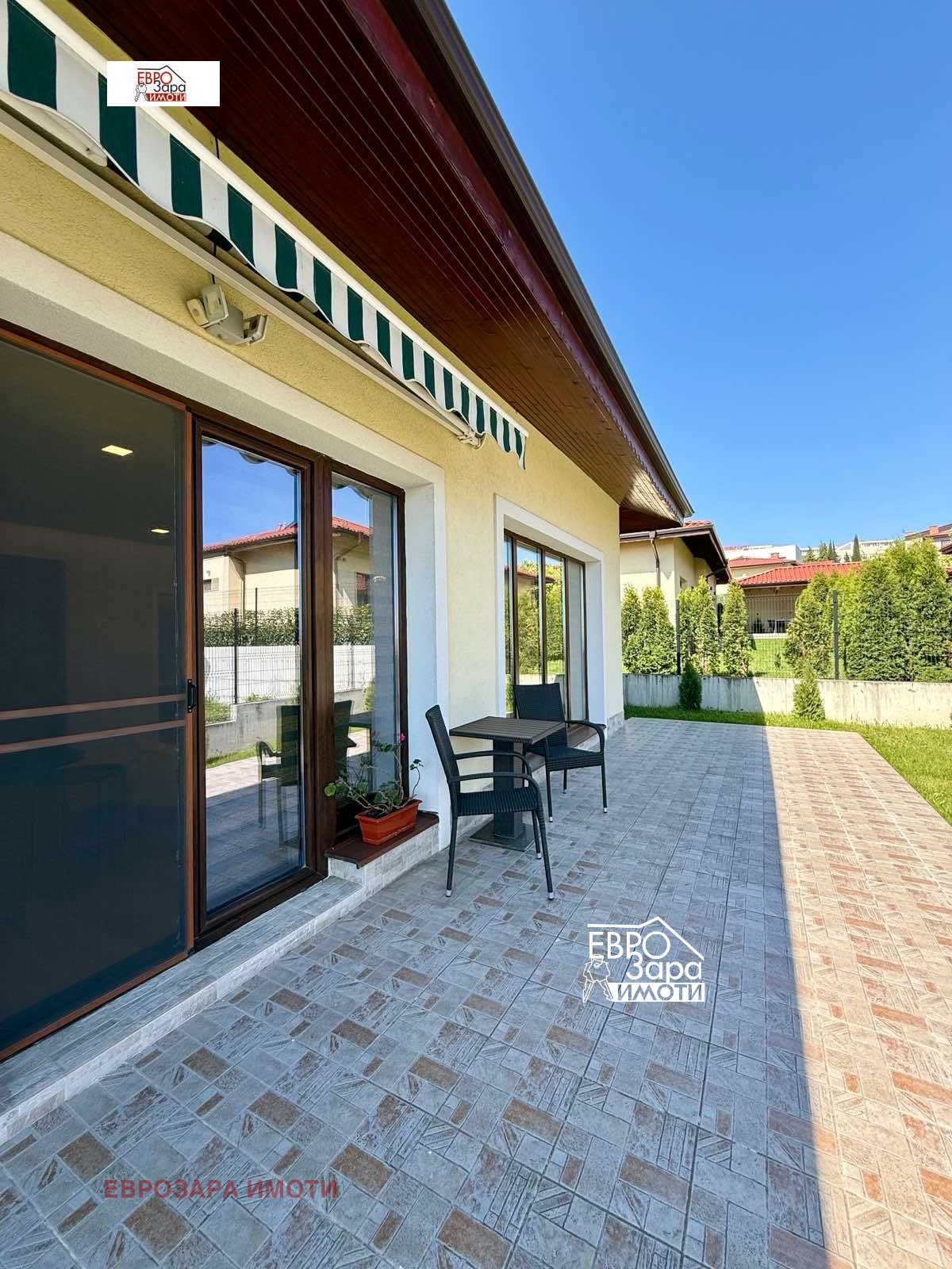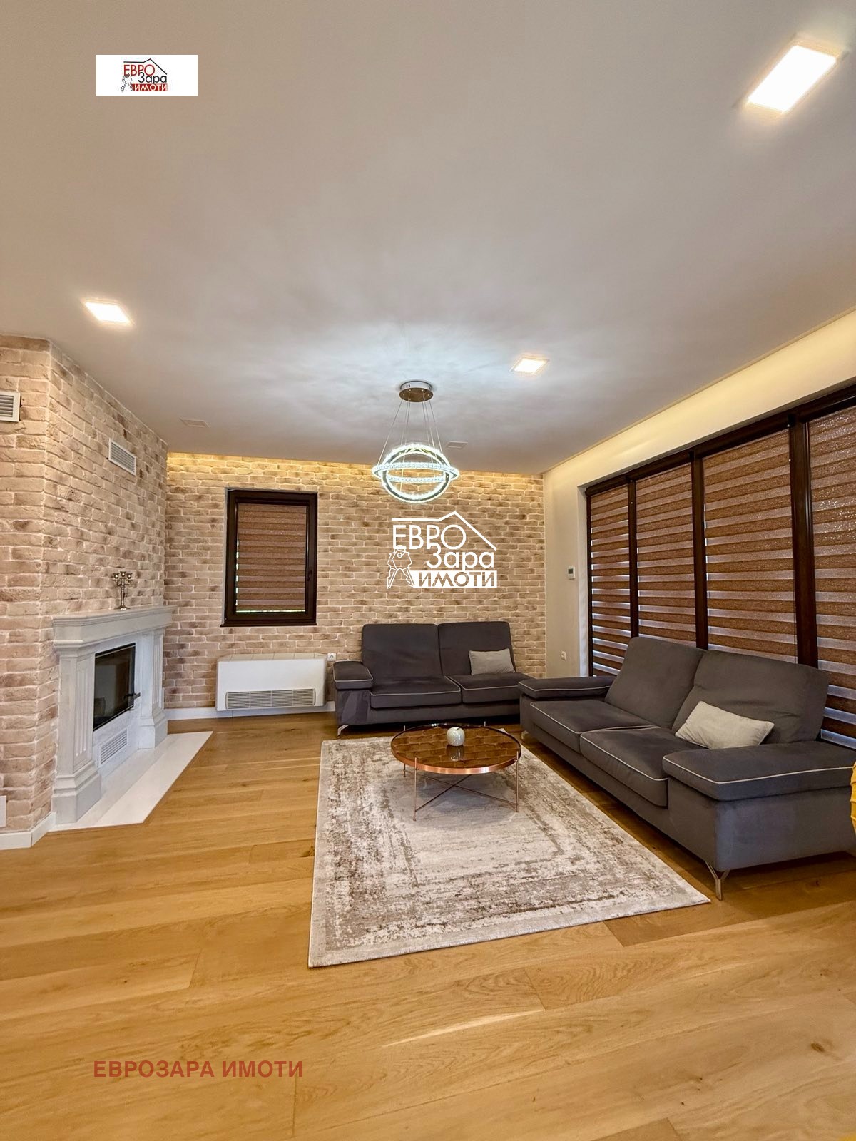 ЕвроЗара Имоти има изключителното удоволствието да Ви представи уникална по рода си къща в град Стара Загора. Къщата е с РЗП 230кв.м.,масивно строителство,едноетажна, завършена през 2018 година. Разпределението е както следва: голяма ,просторна всекидневна от близо 80кв.м., три спални, три бани с тоалетни, складово помещение и обширно подтаванско пространство извън посочената квадратура, което може да бъде използвано за дрешник,склад или други опции.