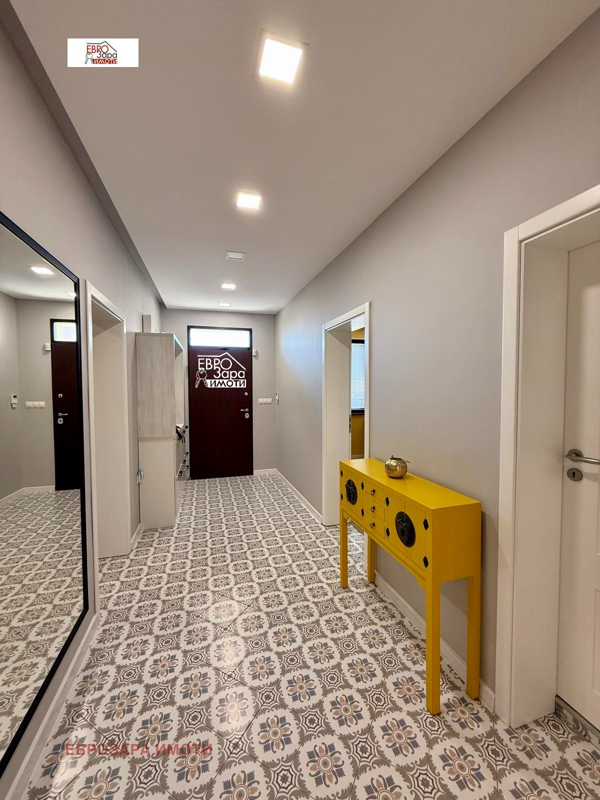Къщата е обзаведена по дизайнерски проект с изключително висок клас електроуреди и мебели. Имотът е впечатляващо съчетание на естествени материали,топли цветове и красота във всеки детайл.Мебелите са от безкоморомисни марки като Aleti Furniture и Kale,подът от естествена дървесина както и цялото обзавеждане включително кухненското такова. Теракота и фаянса са от най-висок клас италиански и испански марки , плотовете в баните са от естествен камък. Три кръга осветление във всички стаи амбиентно, луни,полилеи и абажури. Дограмата е 4 сезона , която предоставя комбинация от добра топлоизолация и ограничаване на прекомерна слънчева светлина в помешенията. Отоплението и охлаждането е организирано с термопомпа плюс един климатик в едната стая. В къщата има и камина с облицовка от естествен камък, която придава домашен уют и усещане за завършеност. Спалните са големи,красиво обзаведени със собствени бани в две от тях.