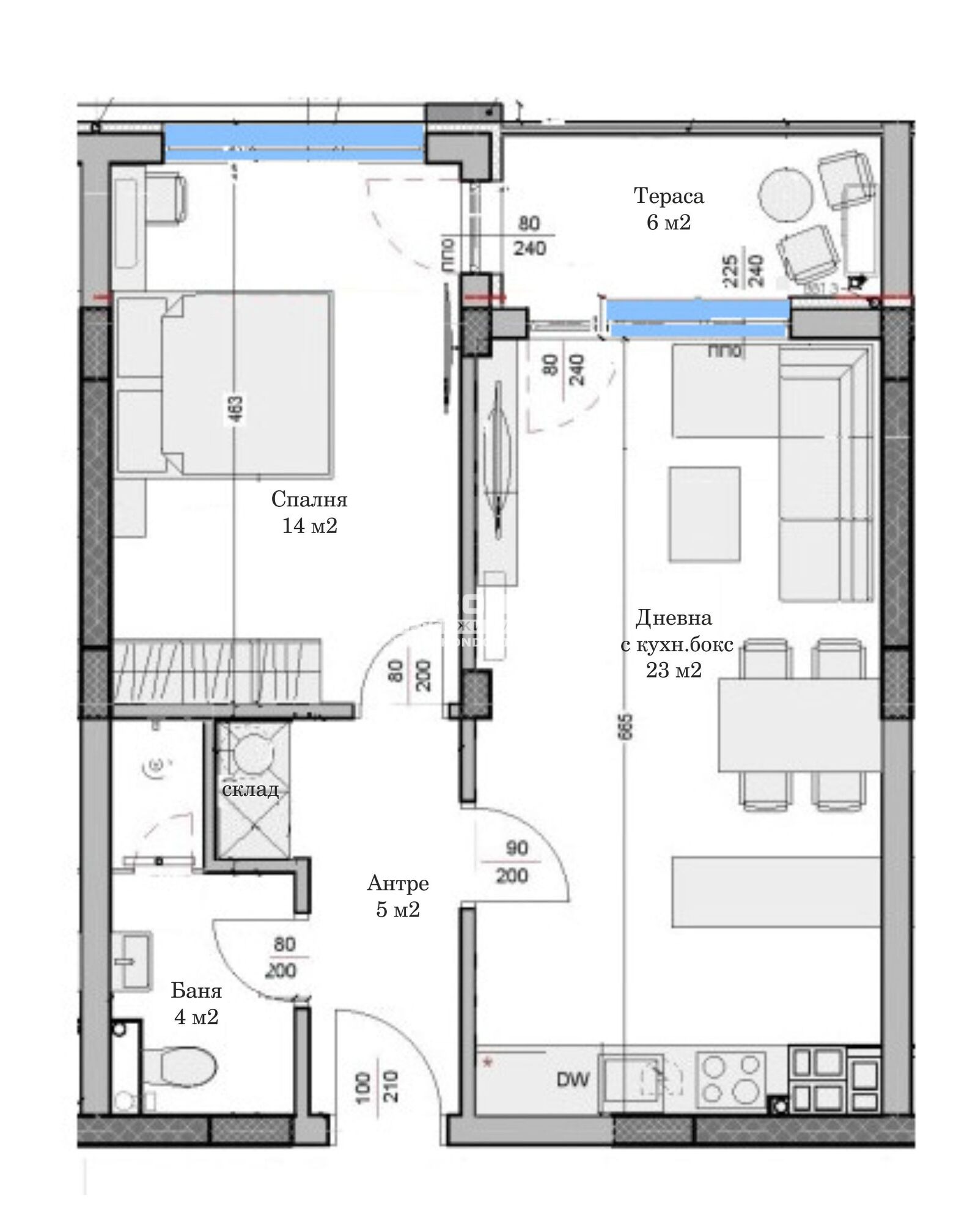 Оферта 66740: Предлагаме Ви функционален двустаен апартамент с перфектно разпределение в нова модерна сграда със собствен стил, изчистена визия, проектирана така, че да създаде максимален комфорт и уют за живеене. Проектът предвижда нискоетажно жилищно строителство, в съответна близост до основни комуникации в един от най-бързо развиващите се райони. Жилището се състои от дневна 23кв.м. с кухненски бокс и излаз на обща тераса, една самостоятелна спалня 14кв.м., входно антре, склад/перално и баня с тоалетна. Сградата се изпълнява от една от водещите строителни компании, наложила се на пазара с множество готови обекти, изпълнени с изключително високо качество и прецизност. Възможност за разсрочено плащане в рамките на строителството , както и възможност за закупуване чрез Банков Кредит с изключително изгодни условия за клиенти на агенция Кондор !!! Приложените снимки в Галерия са от други готови сгради на същия Инвеститор !!! СВОБОДНИ ПОДЗЕМНИ ГАРАЖИ и ПАРКОМЕСТА !!!ВИЖТЕ ОЩЕ ИЗГОДНИ ОФЕРТИ НА https://www.kondorimoti.com/ С ЕЖЕДНЕВНА АКТУАЛИЗАЦИЯ!