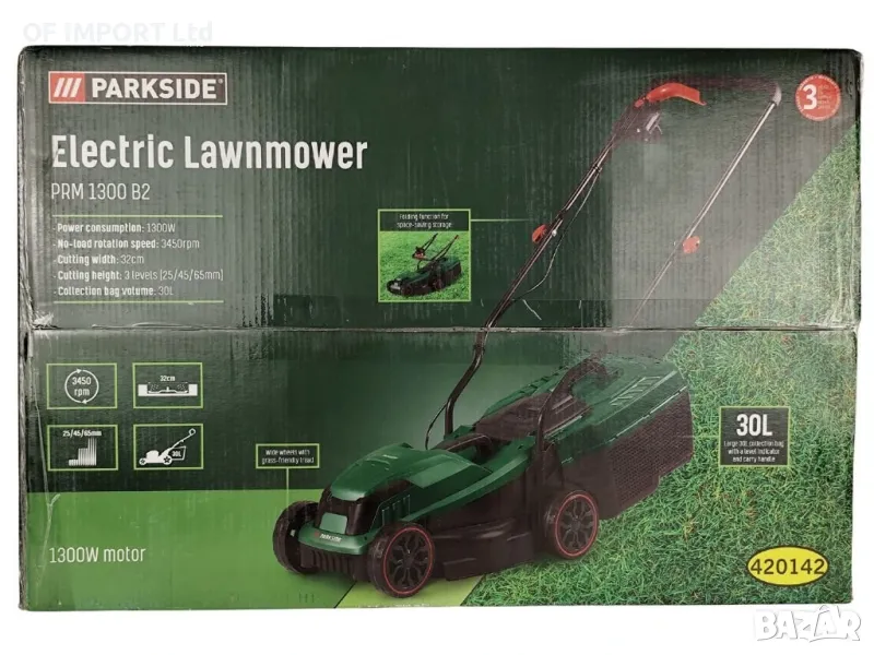 Електрическа Косачка PARKSIDE PRM 1300 B2 30L Разполагаме с нови (възможно е да са с наранена опаковка) и използвани, които са с леки следи от употреба и функционират безупречно.