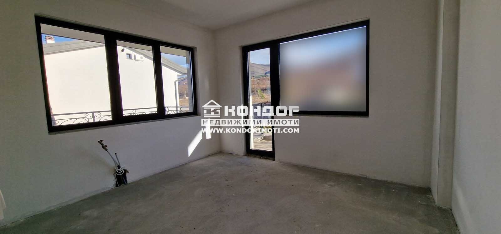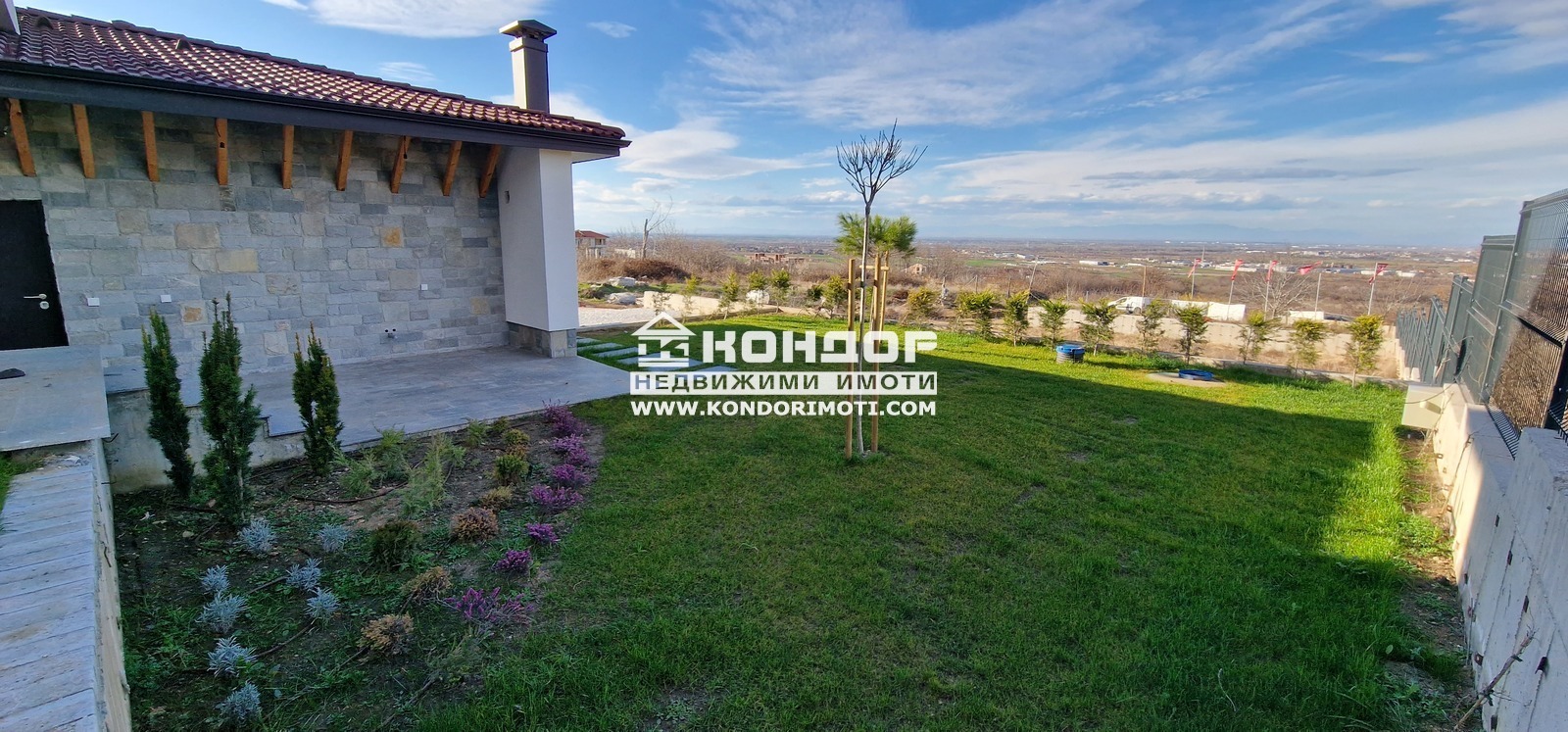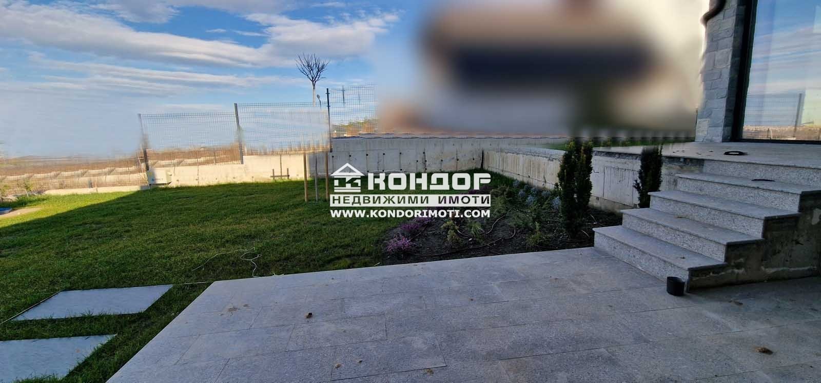Оферта 61242: Предлагаме Ви да закупите новоизградена къща, ситуирана в собствен парцел, с панорамна гледка към град Пловдив. Основните й предимства са модерната архитектура, добрата локация и функционалното разпределение на жилищната площ. Къщата е на две нива с РЗП от 270 кв.м. На първо ниво са разпределени просторна и светла дневна с площ от 51.00 кв.м. с трапезария и кухненска част , предвидено място за камина и излаз към страхотна веранда с място за барбекю с площ от 20 кв.м. с гледка към града, широко входно антре, санитарен възел и топла връзка към удобен двоен Гараж с площ от 50.00кв.м.. На втория етаж се намират три панорамни спални, съответно две детски стаи с площ от 15.00 кв.м. с баня и тоалетна предвидена за тях и една родителска стая с площ от 21.00 кв.м. , която разполага със собствена баня с тоалетна и дрешник . Всяка една от спалните разполага и със самостоятелна тераса. Изградена е инсталация за подово Отопление с термопомпа. При изпълнението е заложено на висококачествени материали, червена Австрийска Тухла, шест камерна дограма, 10см. външна изолация, изградена и оформена външна планировка.Района се оформя като квартал от новопостроени къщи. Парцела е с площ от 555кв.м. и допълнително има 110кв.м. идеални части от обслужващия път, който дава самостоятелен достъп до всяка къща Цената включва стандартно завършване с изградена ограда на имота, присъединяване към ВИК и издаване на Акт 16. Паркирането е подсигурено с две паркоместа пред самата къща и двоен Гараж . Възможност за закупуване чрез Банков Кредит !!!ВИЖТЕ ОЩЕ ИЗГОДНИ ОФЕРТИ НА https://www.kondorimoti.com/ С ЕЖЕДНЕВНА АКТУАЛИЗАЦИЯ!