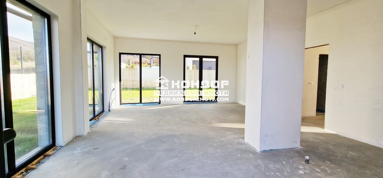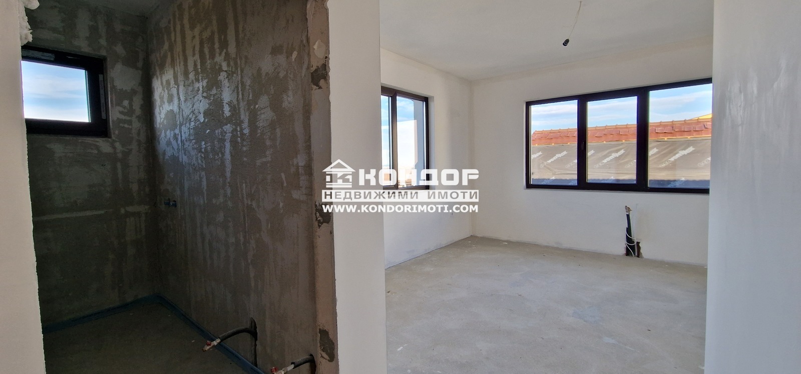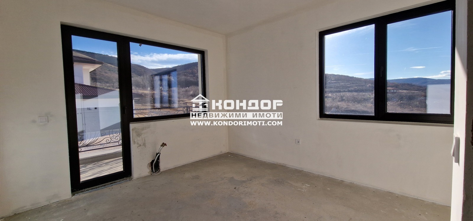 Оферта 61242: Предлагаме Ви да закупите новоизградена къща, ситуирана в собствен парцел, с панорамна гледка към град Пловдив. Основните й предимства са модерната архитектура, добрата локация и функционалното разпределение на жилищната площ. Къщата е на две нива с РЗП от 270 кв.м. На първо ниво са разпределени просторна и светла дневна с площ от 51.00 кв.м. с трапезария и кухненска част , предвидено място за камина и излаз към страхотна веранда с място за барбекю с площ от 20 кв.м. с гледка към града, широко входно антре, санитарен възел и топла връзка към удобен двоен Гараж с площ от 50.00кв.м.. На втория етаж се намират три панорамни спални, съответно две детски стаи с площ от 15.00 кв.м. с баня и тоалетна предвидена за тях и една родителска стая с площ от 21.00 кв.м. , която разполага със собствена баня с тоалетна и дрешник . Всяка една от спалните разполага и със самостоятелна тераса. Изградена е инсталация за подово Отопление с термопомпа. При изпълнението е заложено на висококачествени материали, червена Австрийска Тухла, шест камерна дограма, 10см. външна изолация, изградена и оформена външна планировка.Района се оформя като квартал от новопостроени къщи. Парцела е с площ от 555кв.м. и допълнително има 110кв.м. идеални части от обслужващия път, който дава самостоятелен достъп до всяка къща Цената включва стандартно завършване с изградена ограда на имота, присъединяване към ВИК и издаване на Акт 16. Паркирането е подсигурено с две паркоместа пред самата къща и двоен Гараж . Възможност за закупуване чрез Банков Кредит !!!ВИЖТЕ ОЩЕ ИЗГОДНИ ОФЕРТИ НА https://www.kondorimoti.com/ С ЕЖЕДНЕВНА АКТУАЛИЗАЦИЯ!