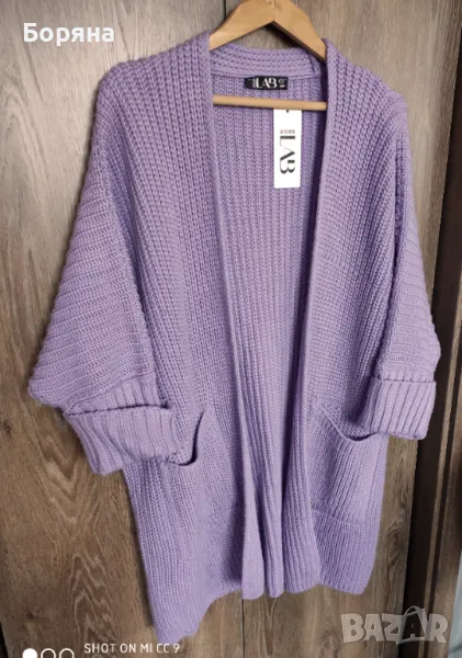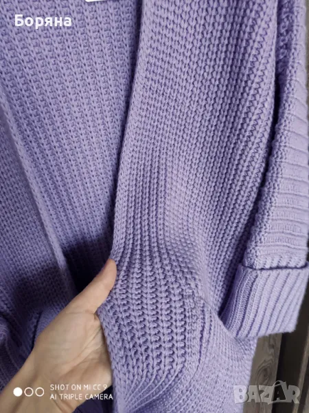Нова с етикет лилава жилетка на Answear Lab, тежка едра плетка, памучна материя, размер универсален, свободен модел с джобове. Цена 60 лв.