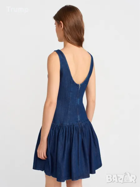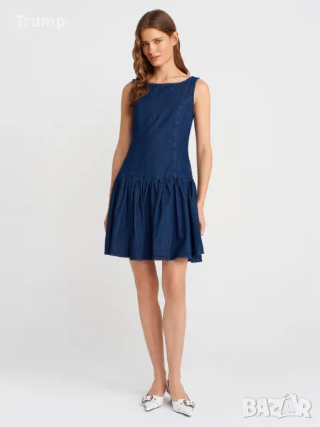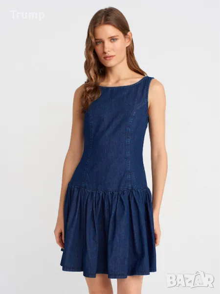 Дънкова мини рокля с плисета в долната част - тъмносиня