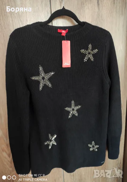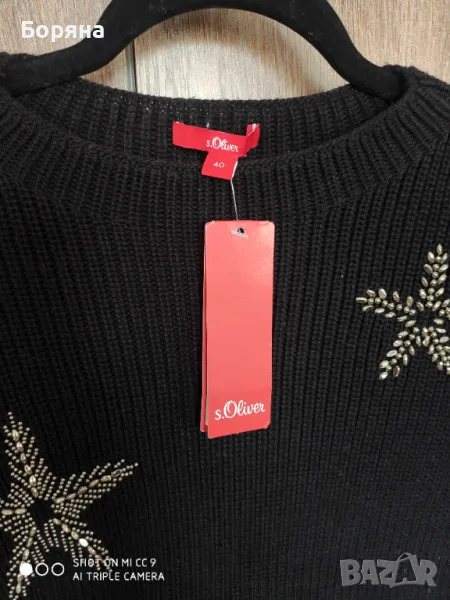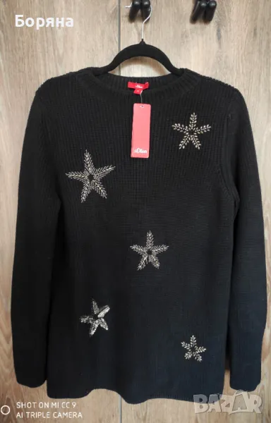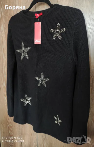 Нов с етикет пуловер S.Oliver, с метални апликации звезди, тежка памучна материя.