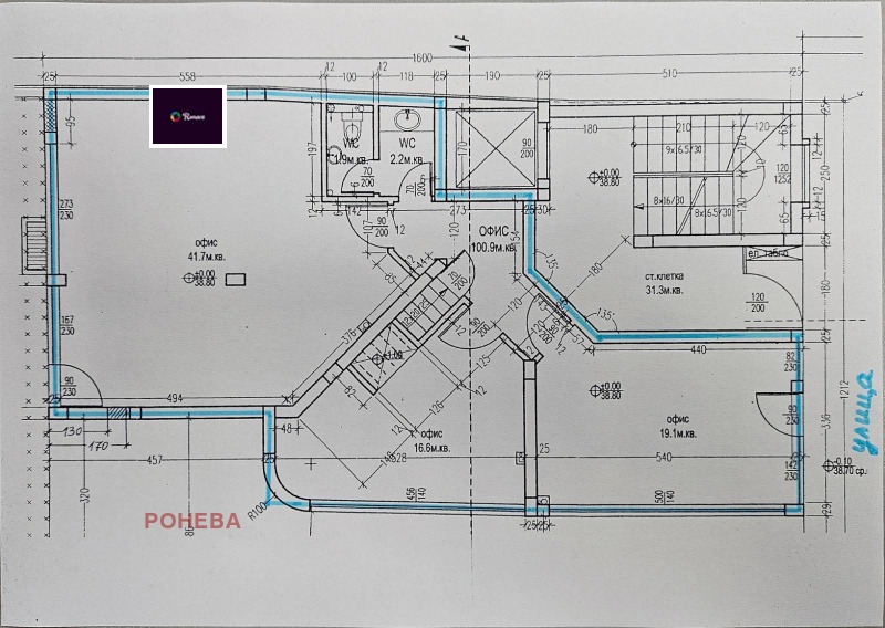 Офис с магазинна част с лице към оживена улицата, създавайки функционално и удобно работно място.