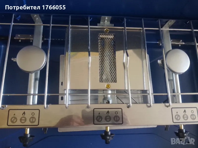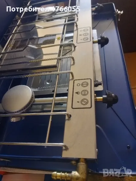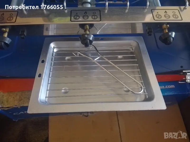 Котлона е нов и неизолзван. С козметични драскотини от престой в гаражElite Camping Chef има 2 мощни и ефективни горелки плюс допълнителна скара , всички регулируеми с независими контроли „натискане и завъртане“.