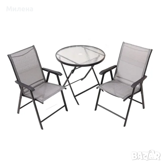 Добавете елегантност и комфорт към вашето външно пространство с този изискан градински комплект, включващ два сгъваеми стола и една сгъваема маса. Създаден с внимание към детайлите, този сет е перфектният избор за всяка градина, тераса или двор, като съчетава стил и функционалност.