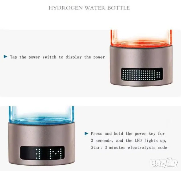 Да не се надвишава 3 пъти 6 минутният режим за 1 бутилка вода! Поради високата концентрация на водород, може да започне да изтича вода!