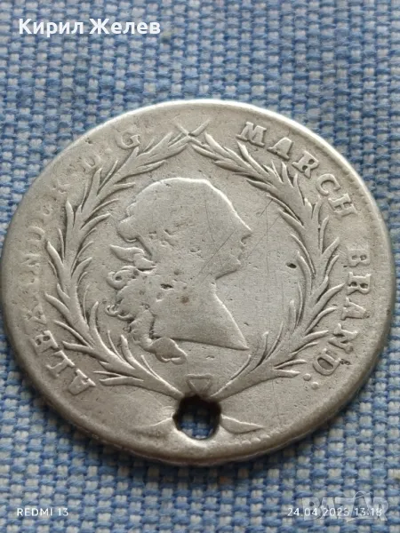 Сребърна монета 20 кройцера 1764г. Бранденбург Анзганц 50129