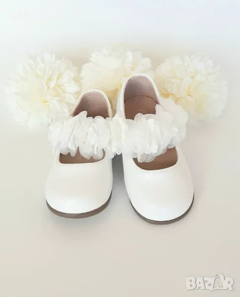 Тези официални бели бебешки пантофки са леки, средно гъвкави, изглеждат ефирни и много елегантни.