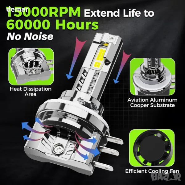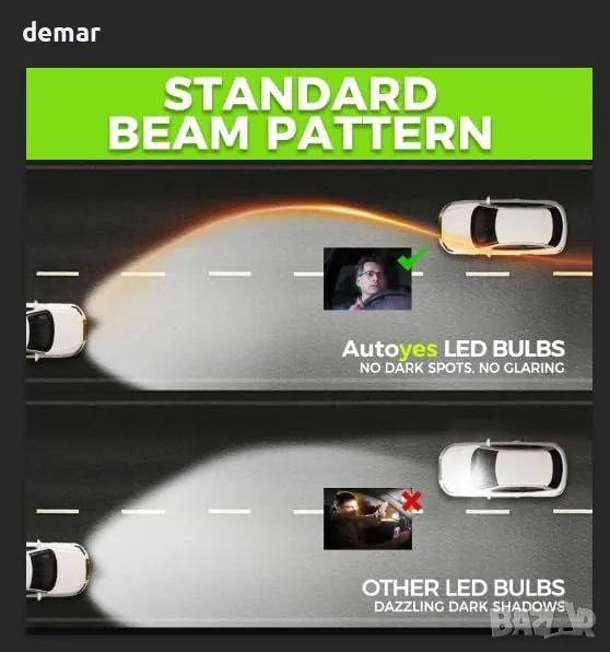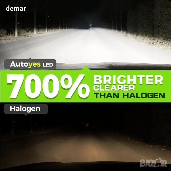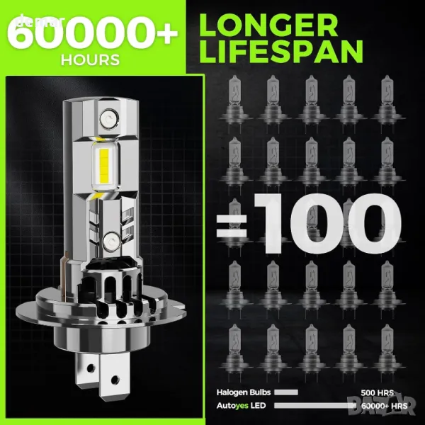 LED крушките за фарове Autoyes H7 H15 предлагат 7 пъти по-голяма яркост от халогенните с 22 000 лумена мощност и ясна студено бяла светлина от 6500K. С 8-CSP LED дизайн, те осигуряват балансирани дълги и къси светлини с прецизно сключване за по-безопасно и без отблясъци нощно шофиране. Компактната конструкция „plug-and-play“ е съвместима с повечето автомобили без адаптери, включва вграден универсален декодер за предотвратяване на кодове за грешки и гарантира 99% съвместимост. Тези крушки са одобрени за движение по пътищата, имитират халогенни светлинни модели и са създадени да издържат на сурови метеорологични условия и екстремни температури.