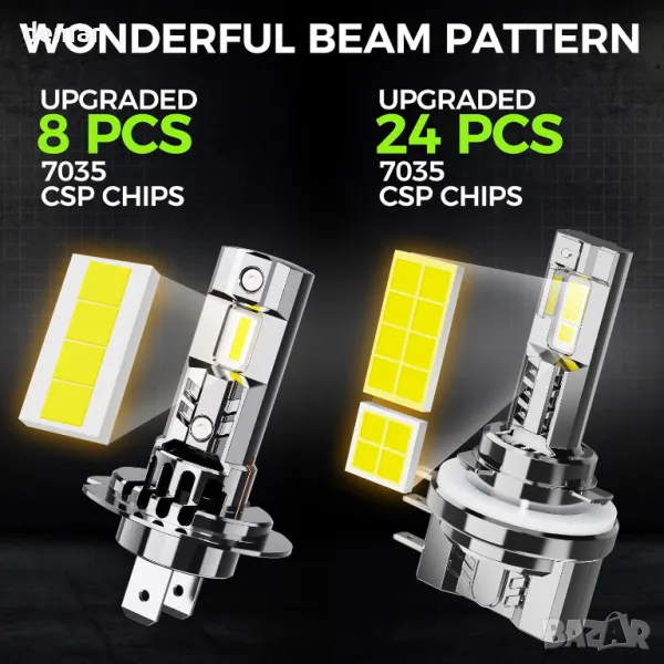 Autoyes H7 H15 LED крушка за фарове, 22000LM 6500K, размер 1:1, Plug and Play, 4 броя