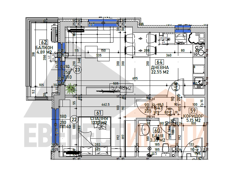 Оферта 4353. Двустаен апартамент в ЛУКСОР 7.2, гр.Пловдив. ДИРЕКТНО ОТ ИНВЕСТИТОР, БЕЗ КОМИСИОН!! ЛУКСОР 7.2 представлява една малка и модерна сграда, проектирана с прави форми, разположена в много тих и зелен район, обединяващ спокойствие, сигурност, функционалност, лукс и чудесно местоположение. Предлагаме Ви ЮЖЕН ДВУСТАЕН АПАРТАМЕНТ с възможност за закупуване на ПАРКОМЯСТО във вътрешен двор или ГАРАЖ. СГРАДАТА е с красива архитектура на прекрасно място, с визия прилягаща за квартала. Апартаментът се състои от южна дневна с трапезария и кухненски бокс, една хубава спалня, баня с тоалетна, входно антре, склад и тераса. Строителството е прецизно с много високо качество на изпълнение и материали: керамична тухла, немска 5-камерна дограма от най-висок клас с мултифункционално стъкло, дизайнерско стълбище/виж галерия/ от естествен камък и облицовка на фасадата, 10 см. външна топлоизолация, парапети на стълбището и терасите от ковано желязо и алуминий, блиндирани входни врати, безшумен асансьор, домофонна система с видеонаблюдение, декоративни елементи по фасадата, LED осветление по общи части и фасада и много други екстри за живущите. Жилищата се издават на шпакловка и замазка с изградена ел. инсталация с ДТЗ, контакти и ключове, ВиК на тапа, входна блиндирана врата от най-висок клас. Мястото е тихо и много спокойно. ЧУДЕСЕН за инвестиция и живене поради бързата си връзка към централните райони и достъпа си до големи университети. Разсрочено плащане в рамките на строителството. Агенция ЕВЕРЕСТ ИМОТИ съдейства за закупуването чрез банков кредит от водещи банки на преференциални условия за клиентите си!!