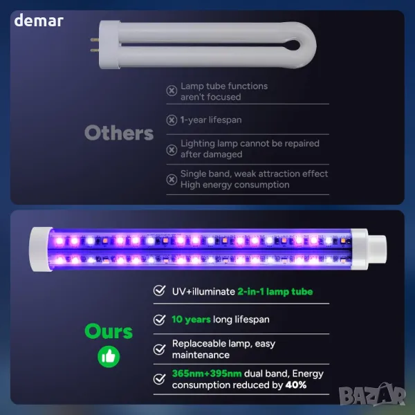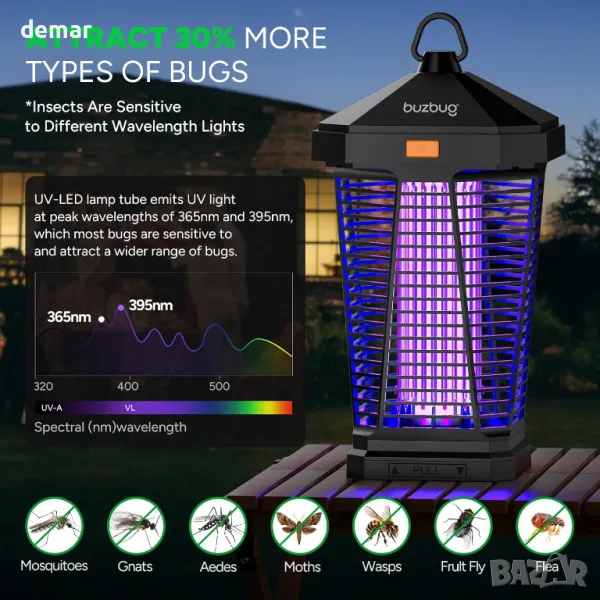 Buzbug 2 в 1 LED унищожител на насекоми 3800V, MA-20