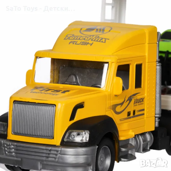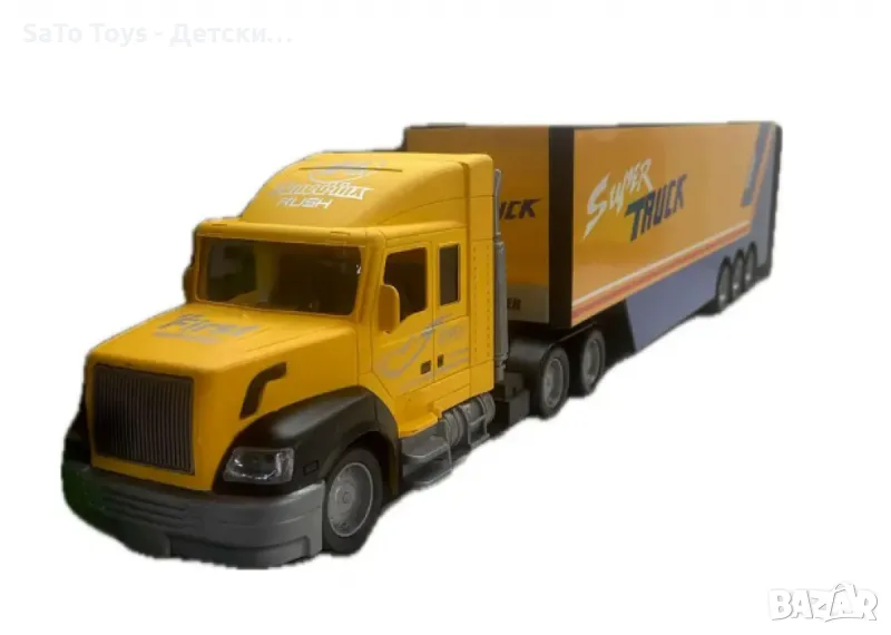 Този голям жълт камион е перфектният подарък за малките любители на превозните средства. Изработен от висококачествени и безопасни материали, камионът е с размери 60x8x15 см, което го прави подходящ за деца над 3 години. С ярки цветове и реалистичен дизайн, той ще привлече вниманието на децата и ще стимулира тяхната въображаема игра.