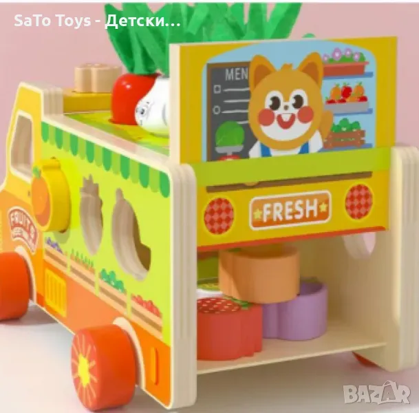 Дървен Монтесори сортер с камионче е образователна играчка, предназначена да стимулира развитието на детето чрез забавление и учене. Този сортер включва дървен камион с различни форми, които детето трябва да постави в съответните изрези на камиона.