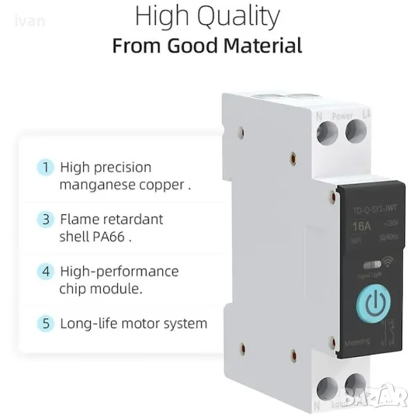 електромер, позволяващ да се следи моментно, дневно, седмично и годишно потребление на електроенергия от разстояние.Може да управлявате и следите данните на смарт електромера през телефона, чрез безплатните апликации TUYA и Smart Life.· Консумация (W)· Напрежение (V)· Ток (А)· Електроенергия (kWh)• Настройка за дистанционно включване и изключване по график. Настройка за автоматично изключване при напускане на местоположението (приложението отчита локацията Ви) или обратно.• За да го използвате като двутарифен електромер, който да отчита изразходената сума, е нужно да активирате акаунт "PREMIUM" в приложението, след 14-дневният безплатен период (25 $/год.). След това настройвате цената за kw/h в определеният часови диапазон.Например:от 07:00 до 23:00 (0.248 /kWh)от 23:00 до 07:00 (0.143 / kWh).* ВАЖНО: Устройството няма защита от пренапрежение и не може да се използва и като предпазител!В електрическата верига е задължително да се монтира защита срещу токов удар и предпазител за претоварване, който да предпази веригата и товара зад устройството.Максимално натоварване за продължително ползване: до 40A !