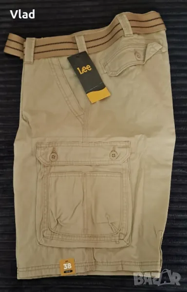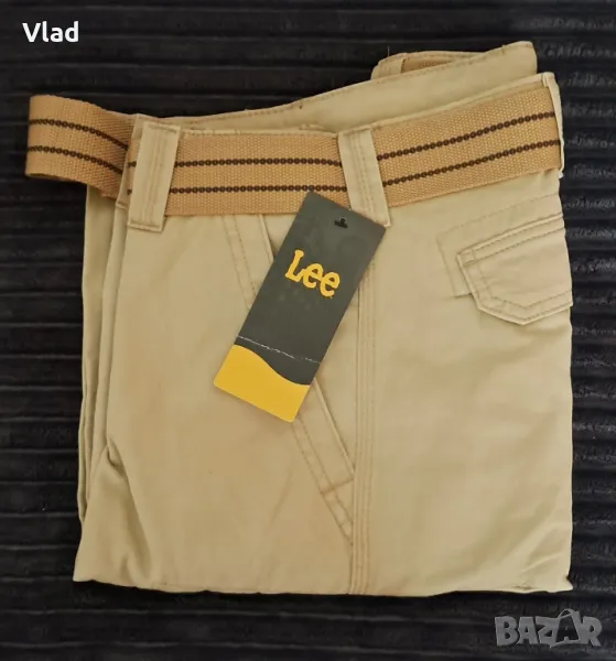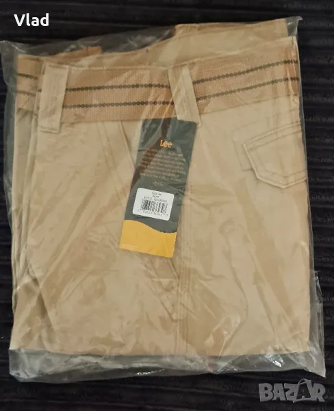 Ново състояние. Оригинален продукт на Lee®. Цвят: телесен/кожен. Изработени от издръжлив дишащ кепърен памук (twill cotton) за дълготраен комфорт и многократно носене. Материала е 100% мек дишащ памук с 9 джоба, вкл. джоб за смартфон. Кройка свободна с обиколка на талията 99см., номер EU 54/XL, ханш 112см. Дължина: вътрешен шев 28см. За мъже с едро и спортно телосложение. Много качествен и здрав плат с троен шев. Катарамата на колана е с D пръстени.