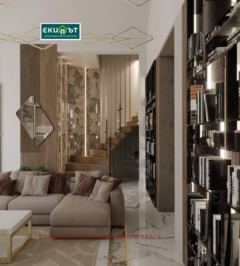 1-во ниво: 192.77кв.м., където са разположени: коридор, дневна, кухня, спални-3бр., кабинет и три санитарни помещения с излаз на огромна панорамна тераса с площ от 54,40кв.м. и BBQ зона.