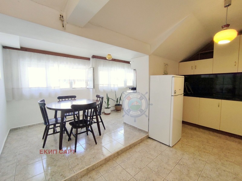 Апартаментът се състои от от кухненска част с трапезария, спалня, просторна спалня разделена на кътове, баня с тоалетна и коридор. Жилището е обзаведено, в много добро състояние и готово за наемане. Без домашни любимци! Огледи с ключ!