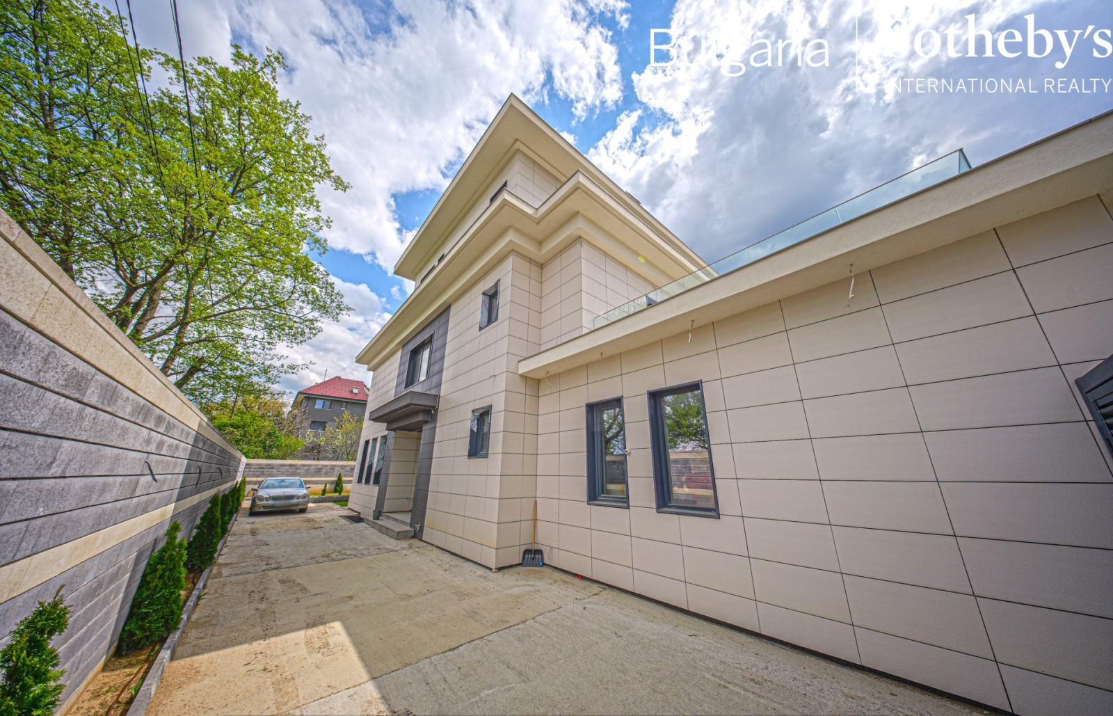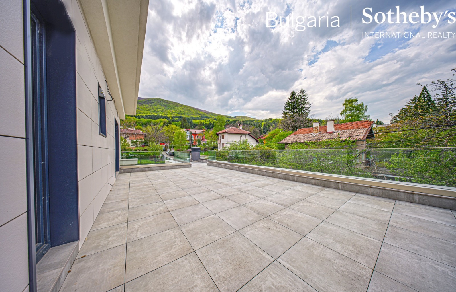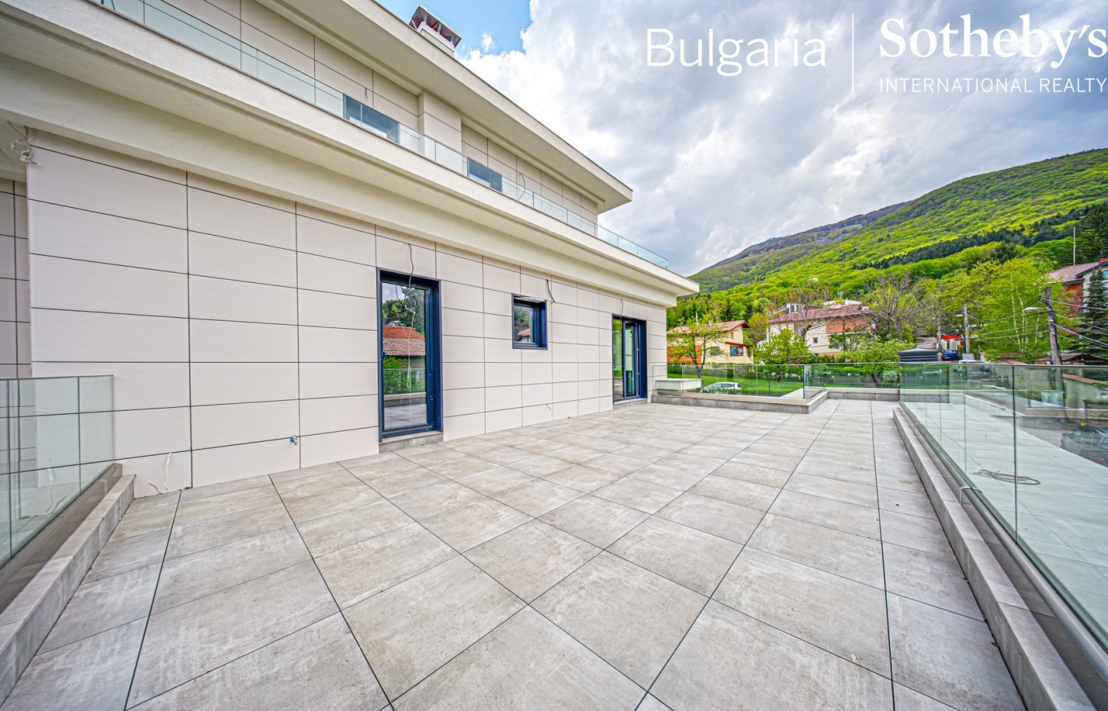 BULGARIA SOTHEBY S INTERNATIONAL REALTY представя на Вашето внимание просторна луксозна къща с голям двор, прекрасни панорамни гледки към града и планината и висок клас строителни материали в кв. Бояна. С решения осигуряващи максимален комфорт на живот.