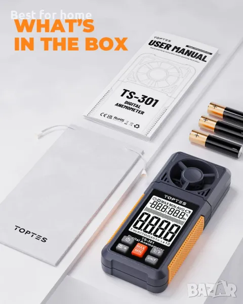 Лек, лесен за използване: Този лек и лесен за използване анемометър е идеален за ентусиасти на открито. Лесно се държи и работи с една ръка, а компактният му размер позволява удобно съхранение в джоба по време на дейности като туризъм, колоездене и бягане. Плюс това, ветромерът TS-301 пести енергия чрез автоматично изключване след 10 минути неизползване