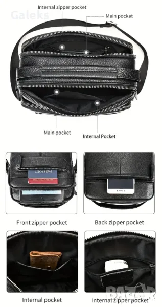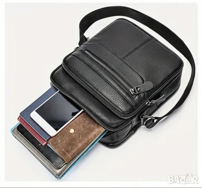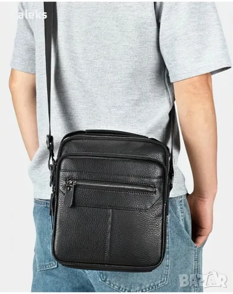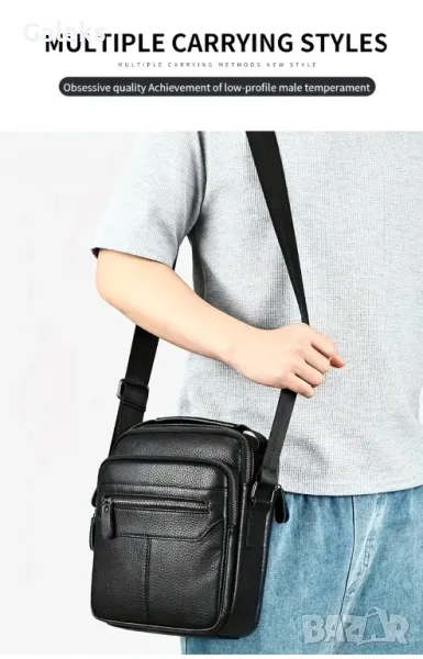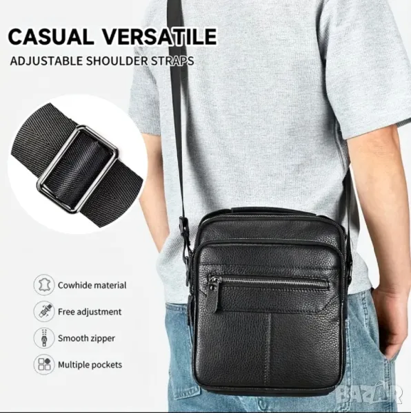 Ежедневна, Практична, модерна и стилна Мъжка кожена чанта с регулируеми презрамки и голяма функционалност!