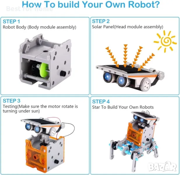 Слънчева енергия: роботът играчка STEM, захранван от слънцето, е оборудван със слънчев панел, който генерира енергия и задвижва робота да се движи и бяга. Не е необходима батерия. Този научен комплект помага на вашите деца да стимулират въображението си и да научат основната концепция за възобновяемите енергийни източници.