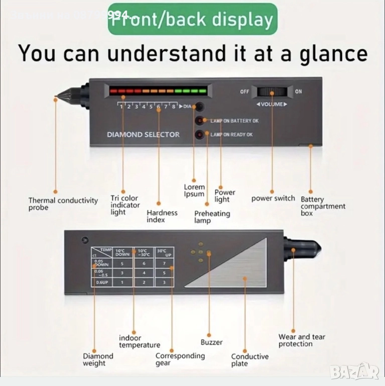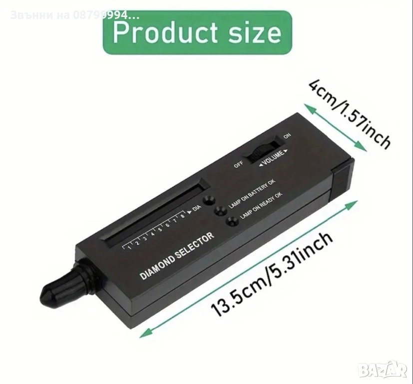 да разграничи лесно показанията, така че можете да сте сигурни, че камъкът е истински диамант. Има LED индикатор и звуков сигнал Ще светне червена светлина и ще се покаже звуков индикатор.