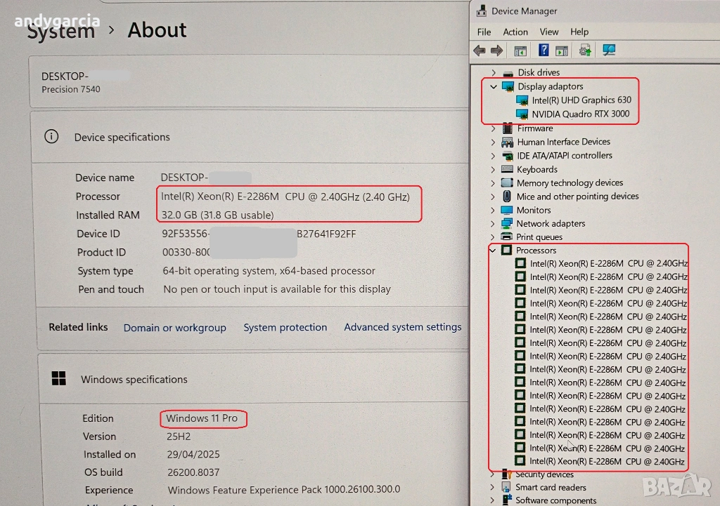 Това е много рядката версия със сивия метален капак /масово е с черен карбонов/ и 4K Ultra HD дисплей И най-мощния възможен процесор Intel Xeon E-2286M, който е пълен еквивален на Core i9-9980HK, НО го бие в повечето тестове - СПРАВКА СНИМКИТЕ.