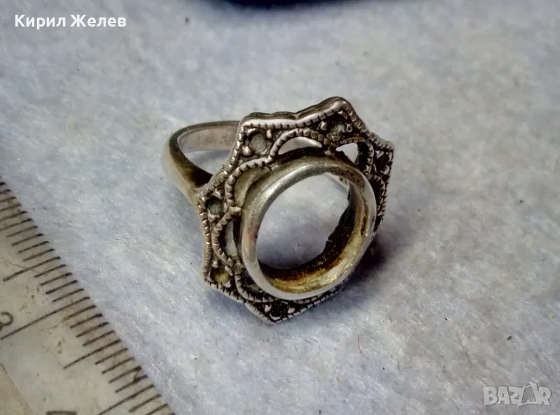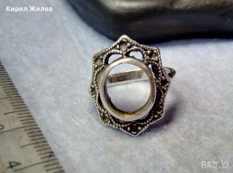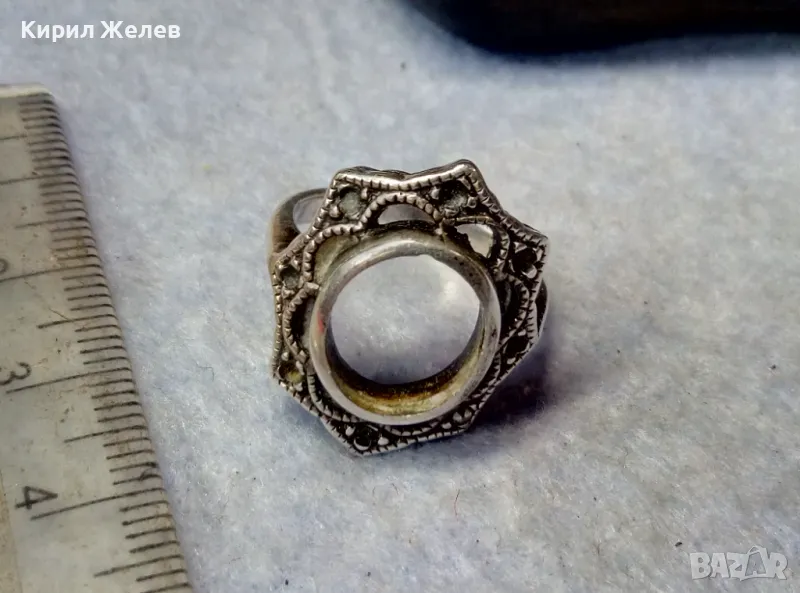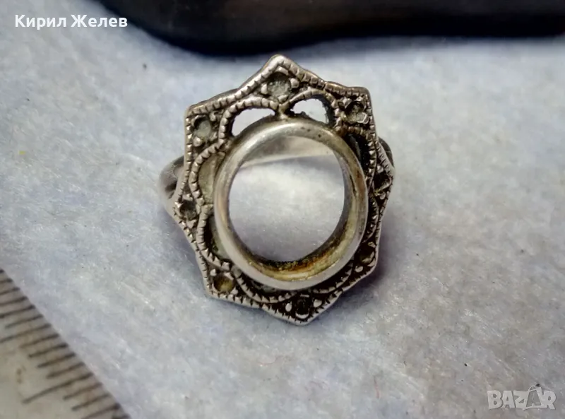 СТАР АЖУРЕН РетроАРТ СРЕБЪРЕН ПРЪСТЕН СРЕБРО 925 с ГНЕЗДА За ИНКРУСТИРАНЕ на СКЪПОЦЕННИ КАМЪНИ 41693