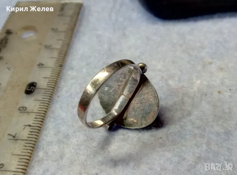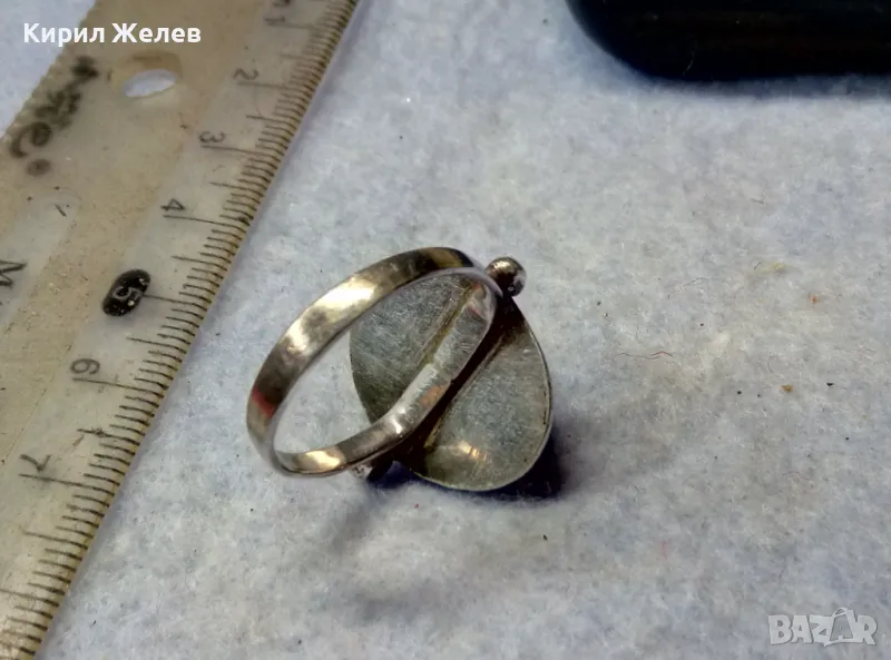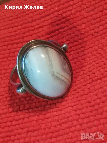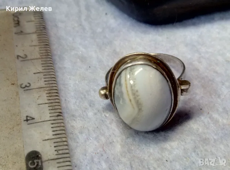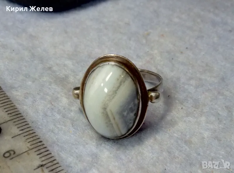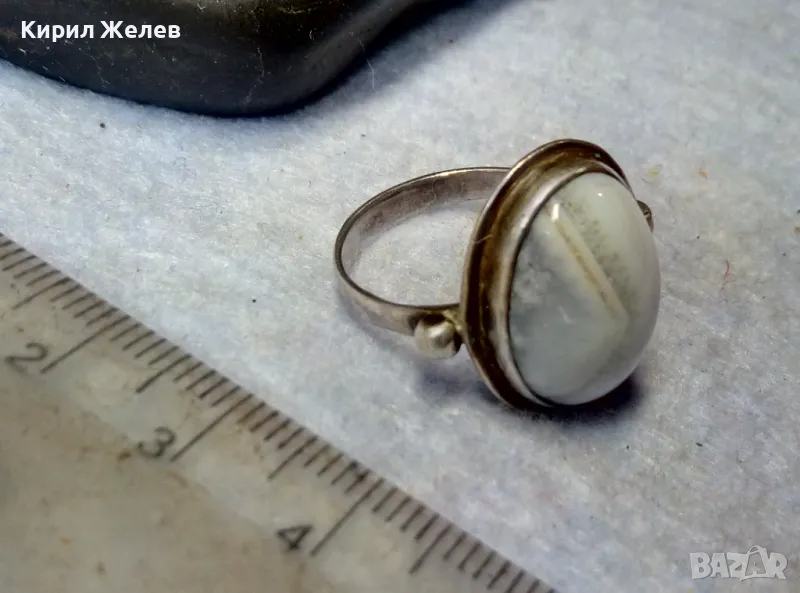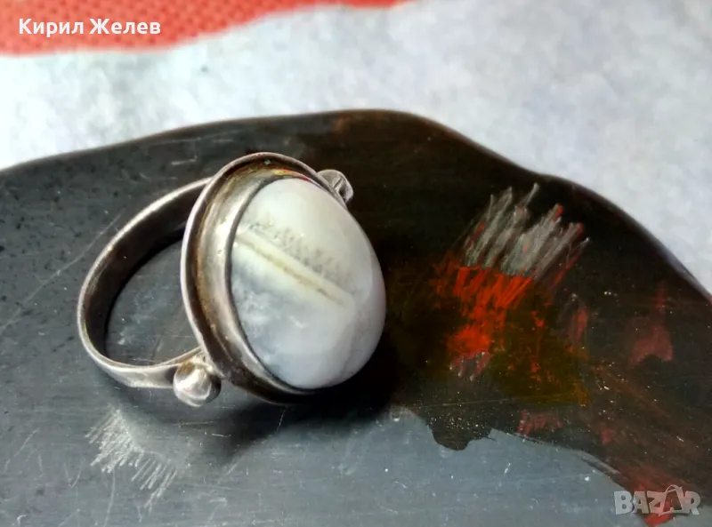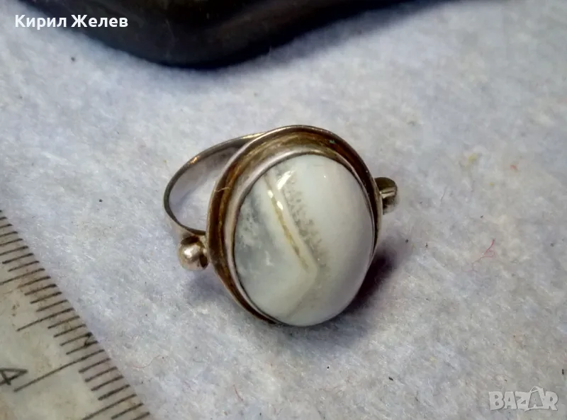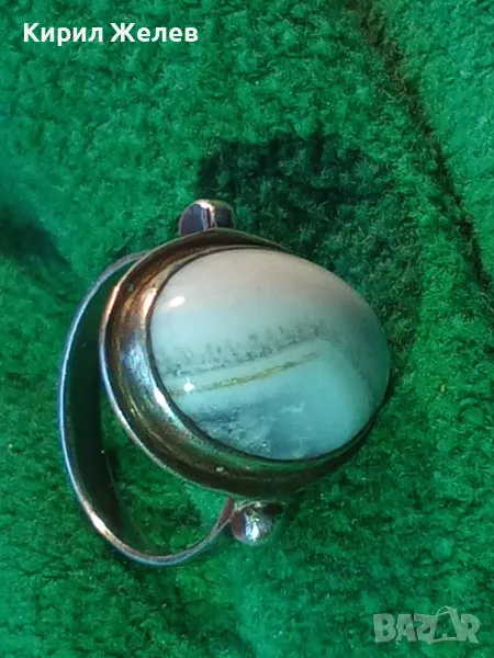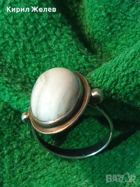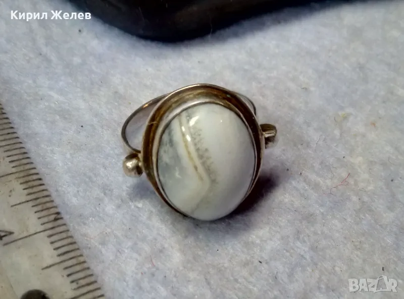 СТАР ВИНТИДЖ СРЕБЪРЕН ПРЪСТЕН СРЕБРО ВИСОКА ПРОБА с ШЛИФОВАН МЛЕЧЕН АХАТ МАЙСТОРСКА ИЗРАБОТКА 41465
