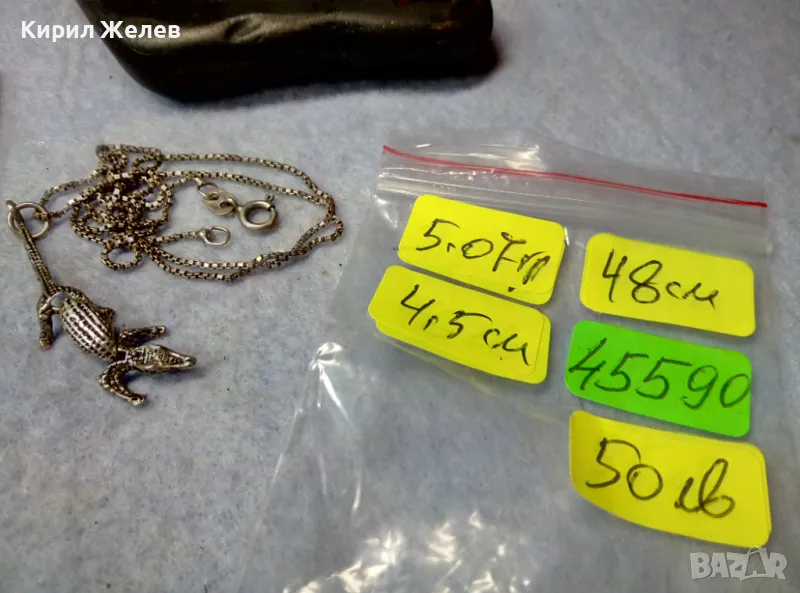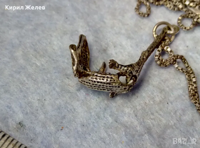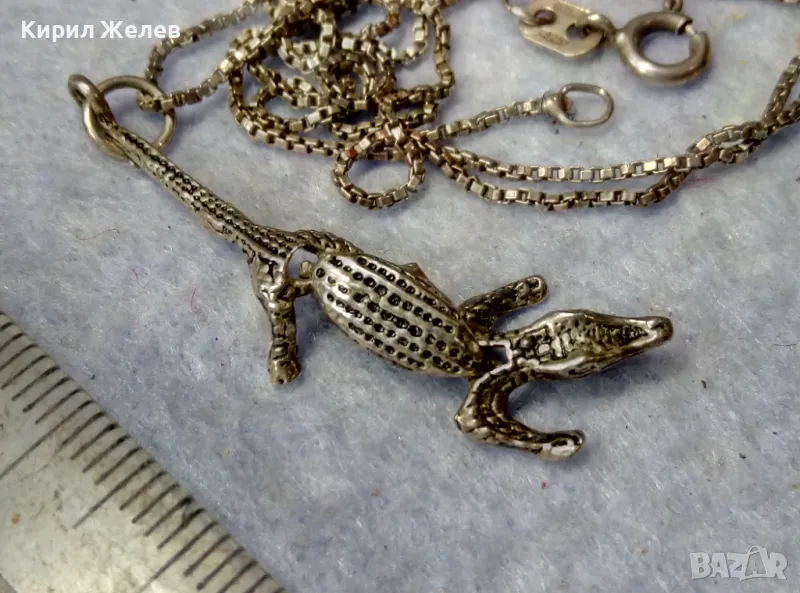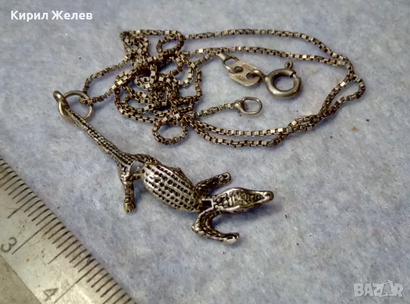 ФИНА ИТАЛИАНСКА СРЕБЪРНА ВЕРИЖКА с АРТ ВИСУЛКА СРЕБЪРЕН КРОКОДИЛ - СРЕБРО 925 РЪЧНА РАБОТА 45590
