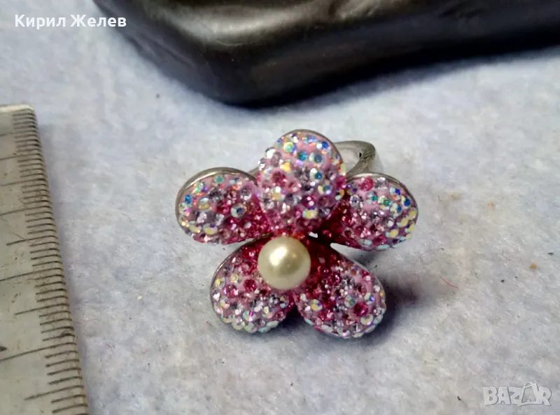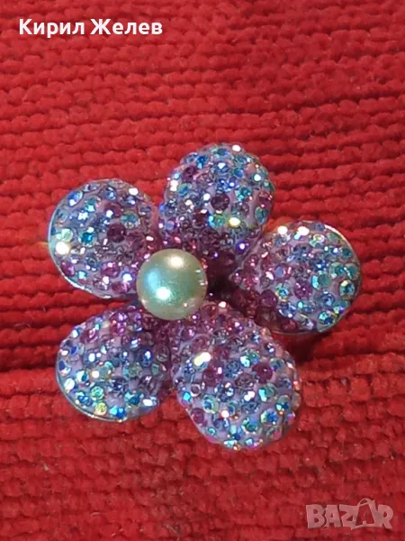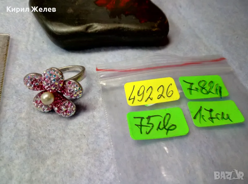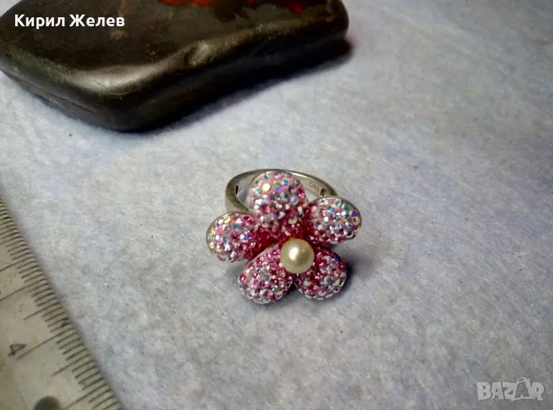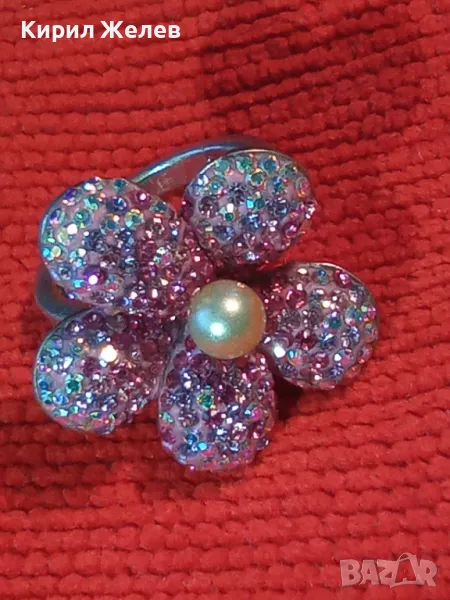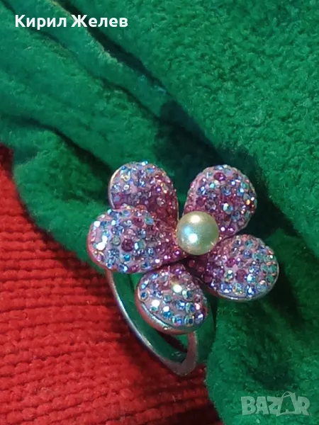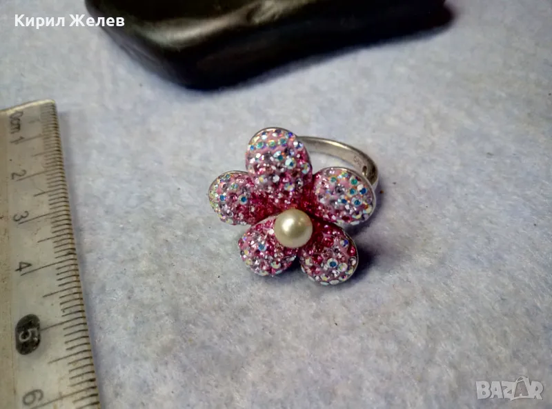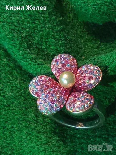 СКЪПОЦЕНЕН СРЕБЪРЕН ПРЪСТЕН ЦВЕТЕ СРЕБРО 925 с БЯЛА НАТУРАЛНА ПЕРЛА ЕМАЙЛ РАЗНОЦВЕТНИ КАМЪЧЕТА 49226