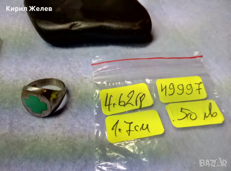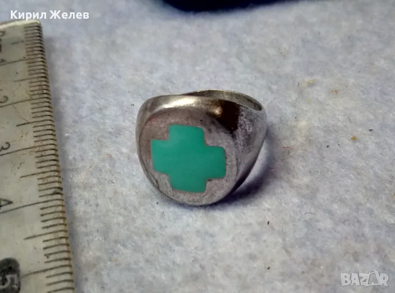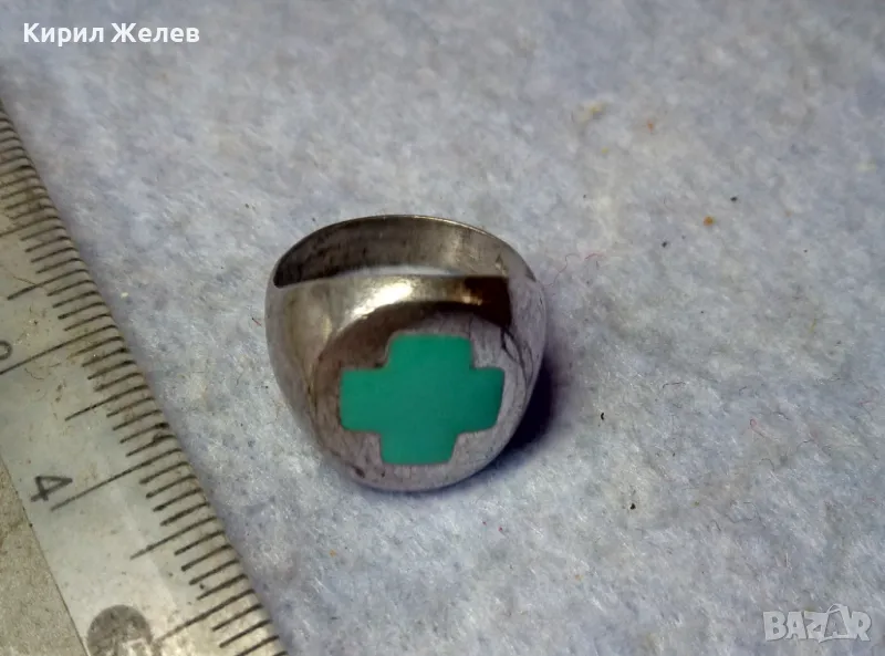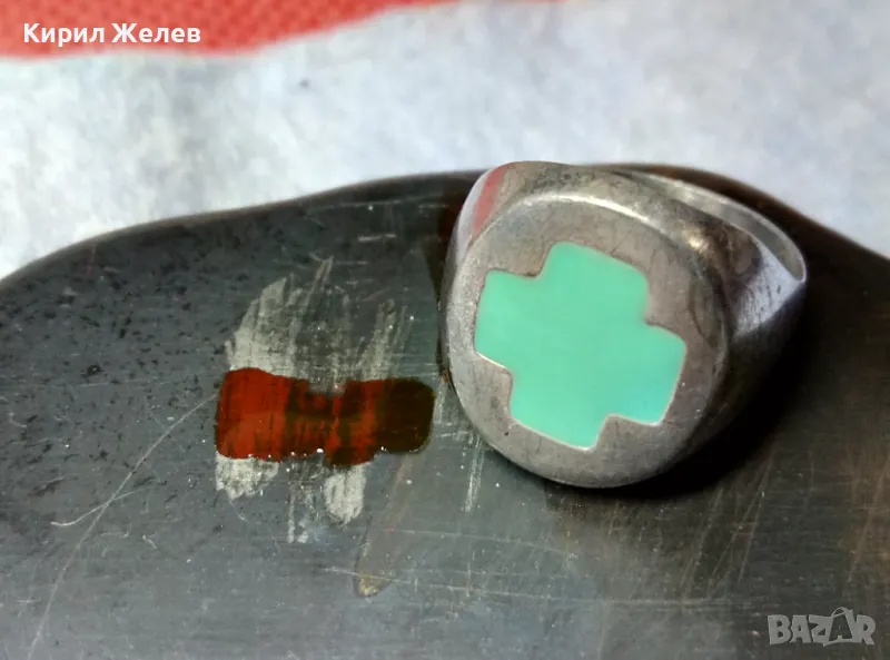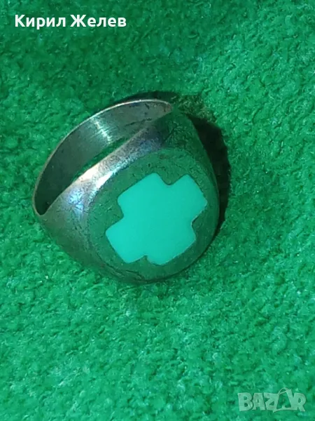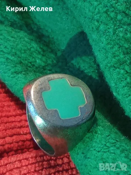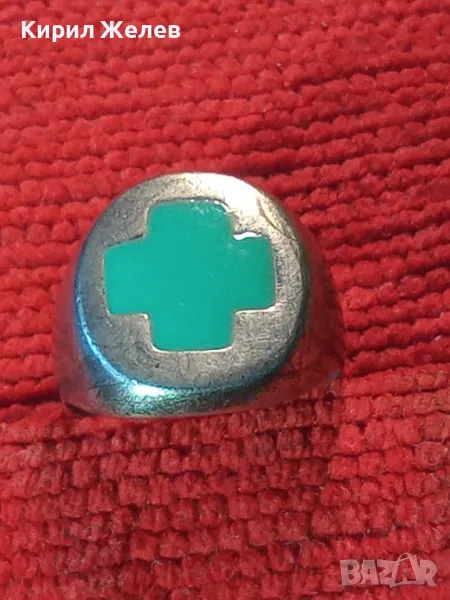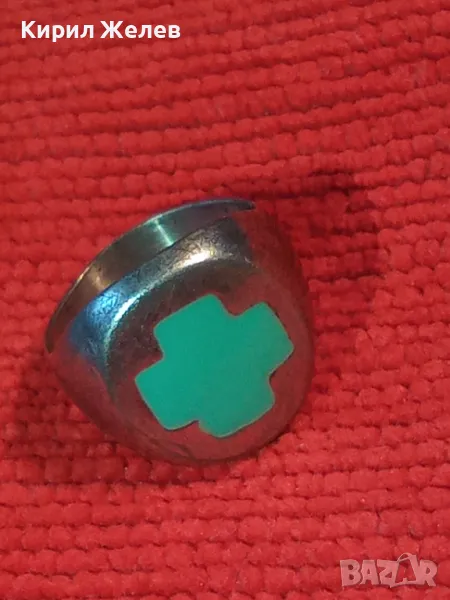 СТИЛЕН СРЕБЪРЕН ПРЪСТЕН СРЕБРО 925 с КРЪСТООБРАЗЕН ЗЕЛЕН ЕМАЙЛ РЪЧНА АРТ РАБОТА 49997