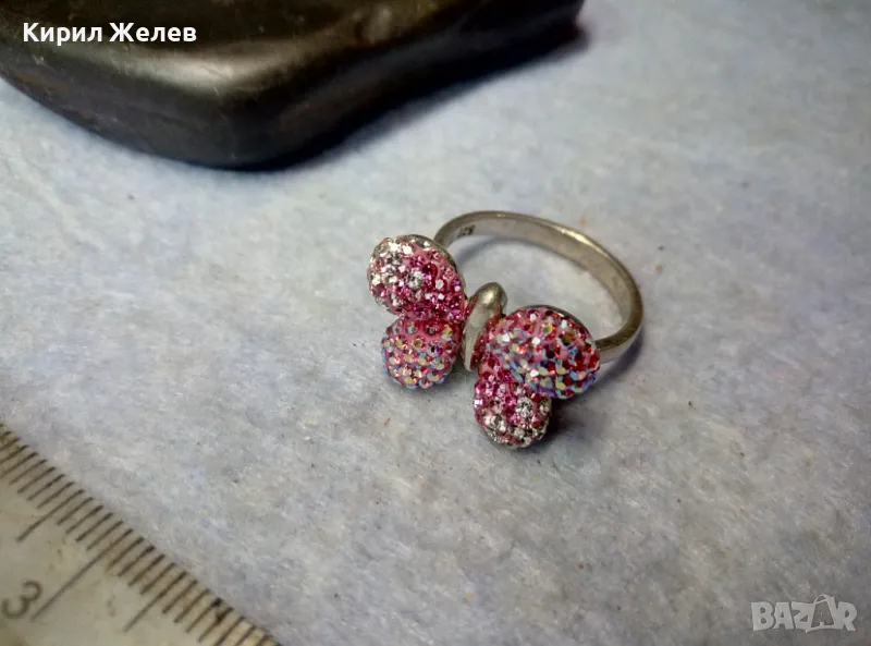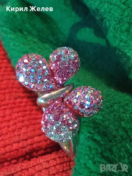 СКЪПОЦЕНЕН СРЕБЪРЕН ПРЪСТЕН ПЕПЕРУДА СРЕБРО 925 с РОЗОВ ЕМАЙЛ и РАЗНОЦВЕТНИ КАМЪНИ 47981