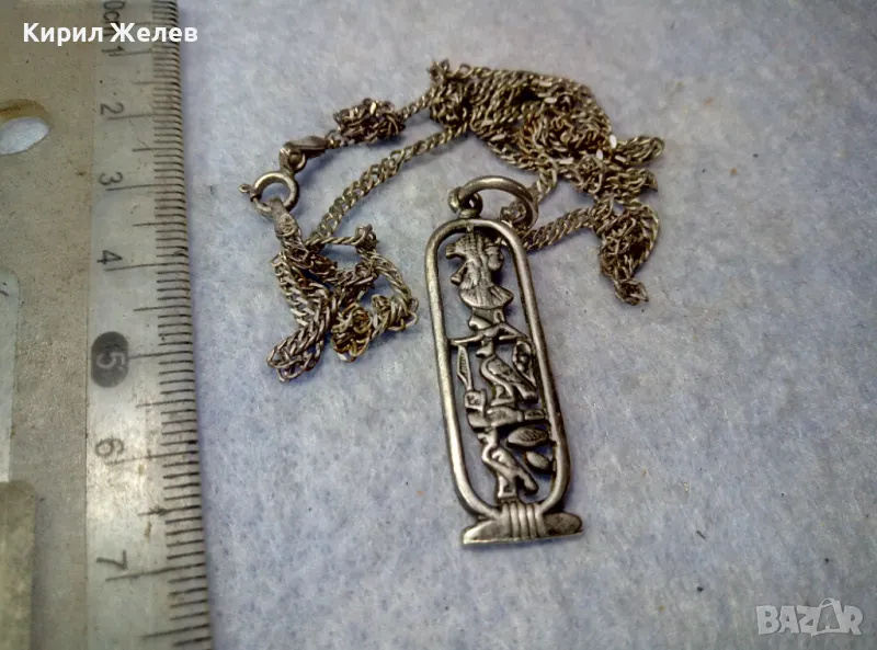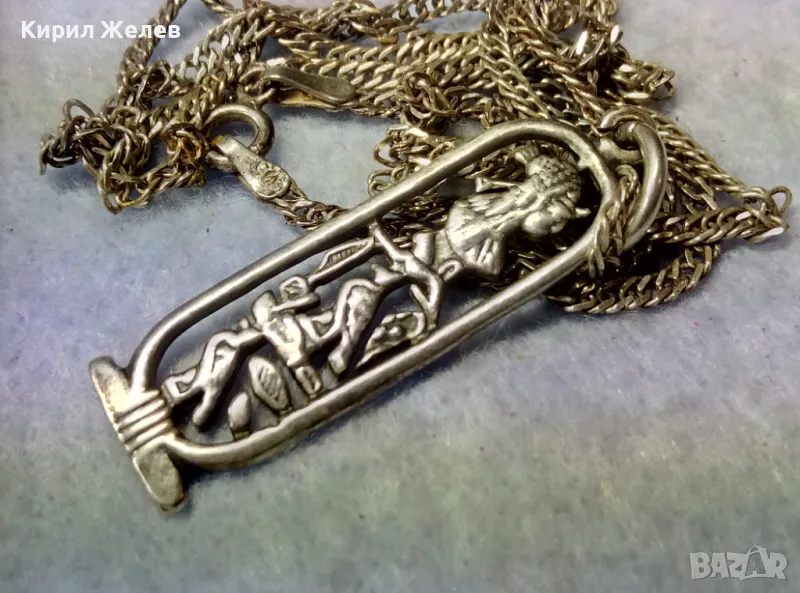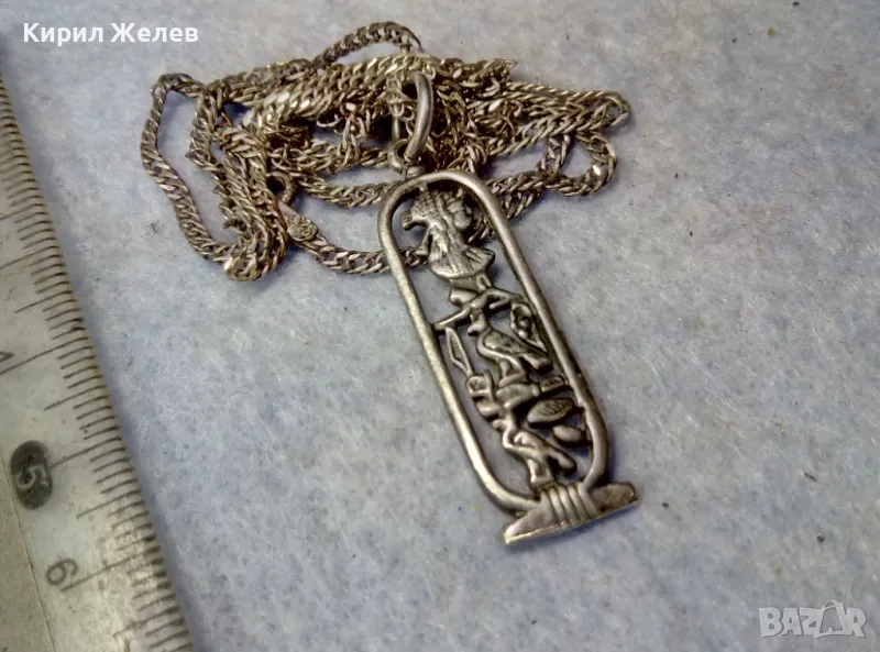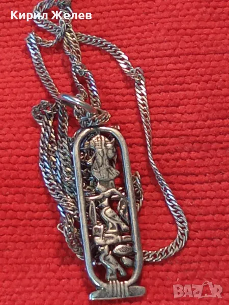 АЖУРЕН СРЕБЪРЕН МЕДАЛЬОН с ЕГИПЕТСКИ СИМВОЛИ със СРЕБЪРНА ВЕРИЖКА СРЕБРО 925 РЪЧНА АРТ РАБОТА 34641