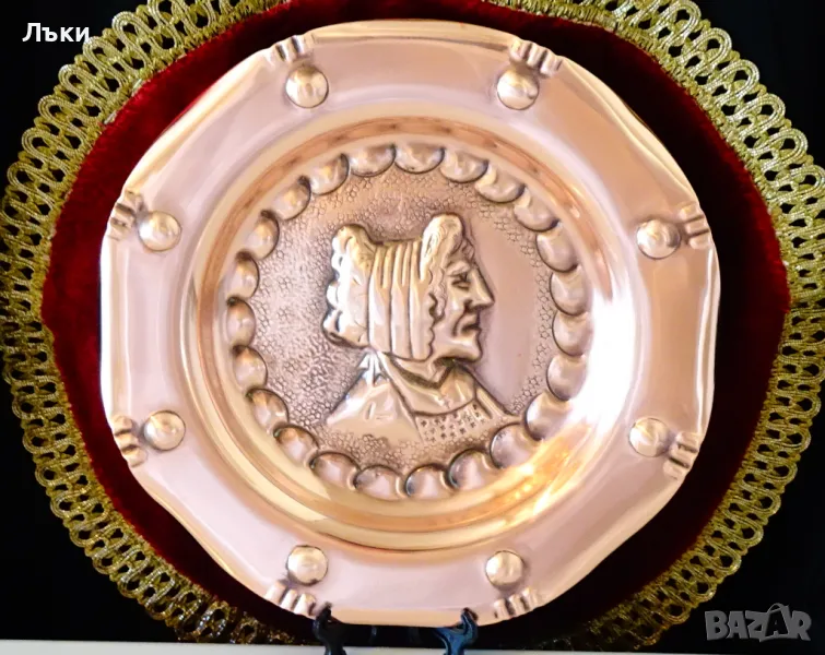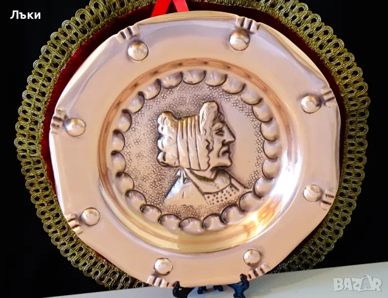 Старинна медна чиния за стена,медно пано,ръчно кован