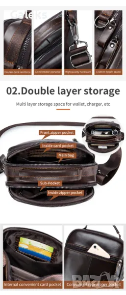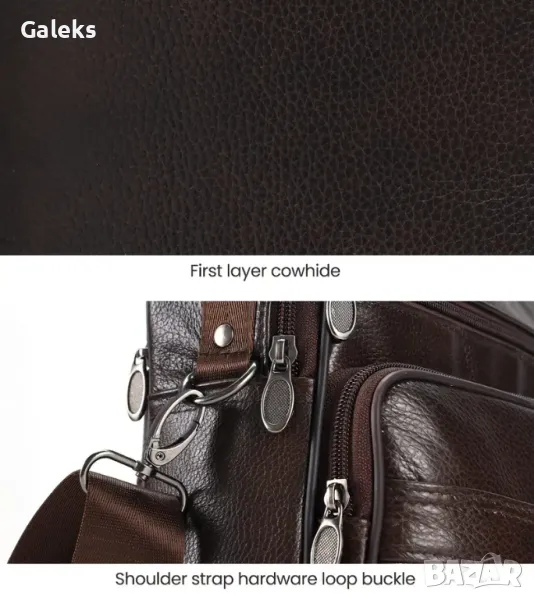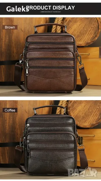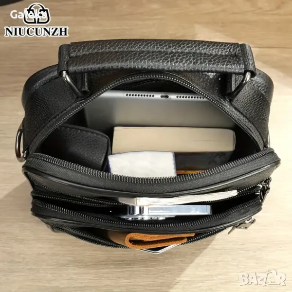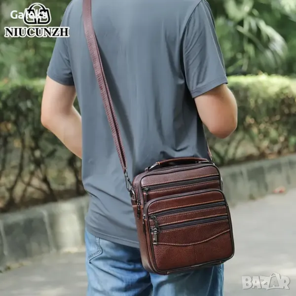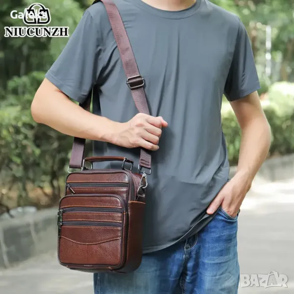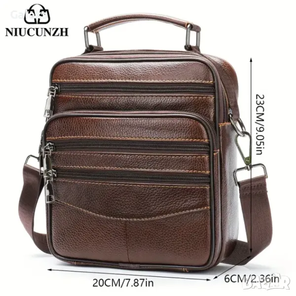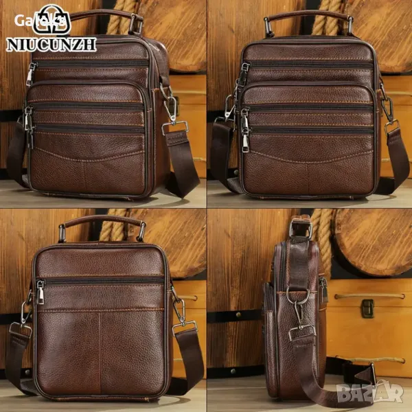 Мъжка удобна, класическа и практична кожена чанта NIUCUNZH*/Черна и кафява естествена кожа!