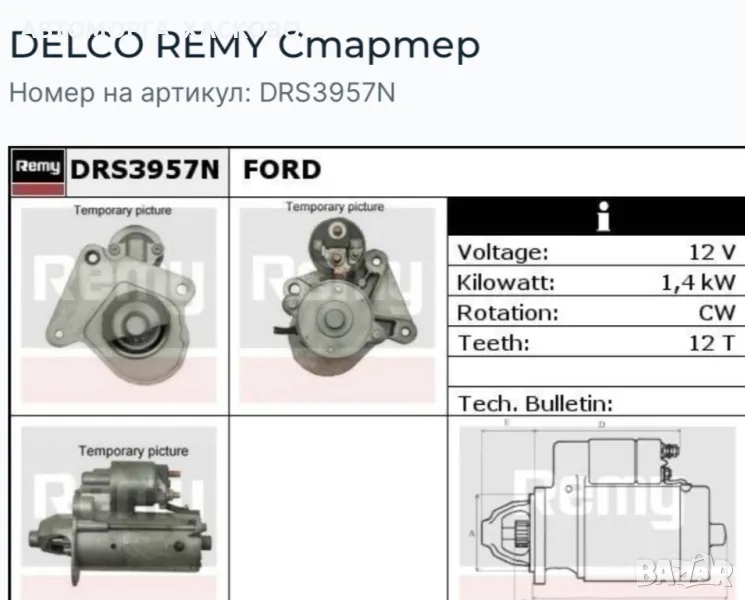 Стартер за Ford Fiesta mk 5 mk 6 Ford B-Max Mazda 2 1.4 CD