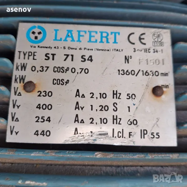 продавам елдвигател 0,37 кв, 1360 оборота в минута