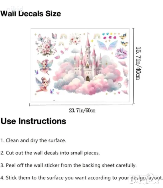 Замък феи еднорог самозалепващ стикер лепенка за стена детска стая декор , снимка 1 - Други - 50027549 Замък феи еднорог самозалепващ стикер лепенка за стена детска стая декор , снимка 2 - Други - 50027549 1/2