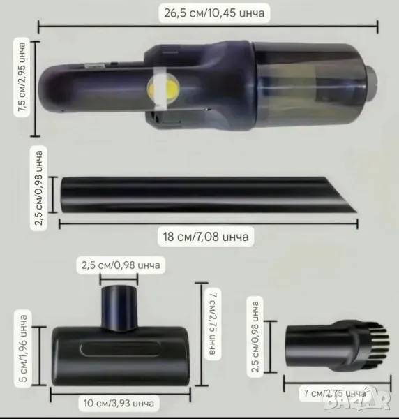 Мини прахосмукачка за почистване на автомобил,дом и др. с 1800ма литиево - йонна батерия 🔋 ! Включени приставки и кабел за зареждане /повече вижте снимките/ Разгледате и другите ми обяви за парфюми, техника и Ала-бала 👍🏻