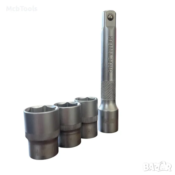 • Динамометричен ключ + вложки 17 мм, 19 мм, 21 мм + удължител 1/2″